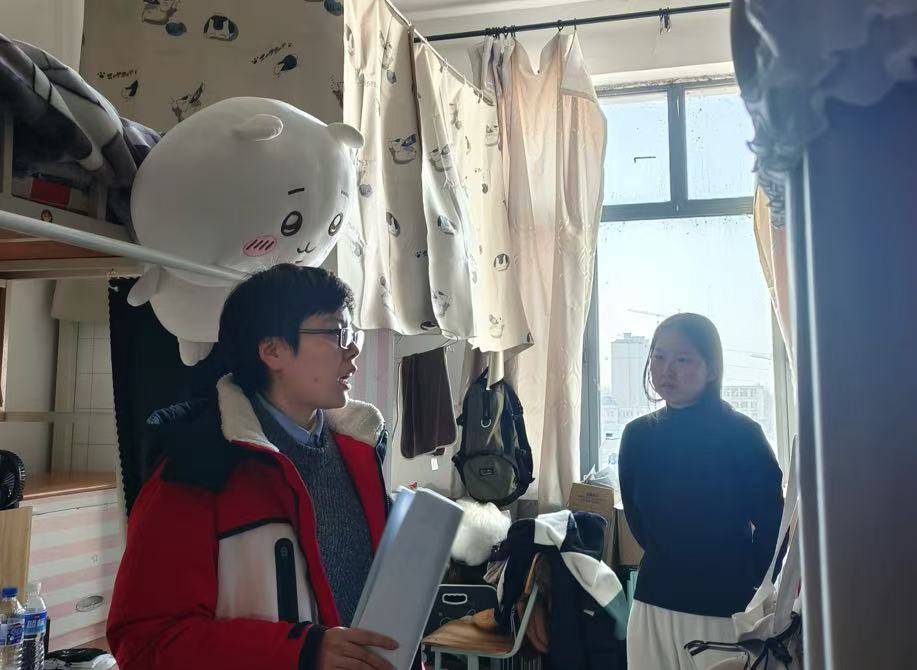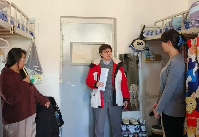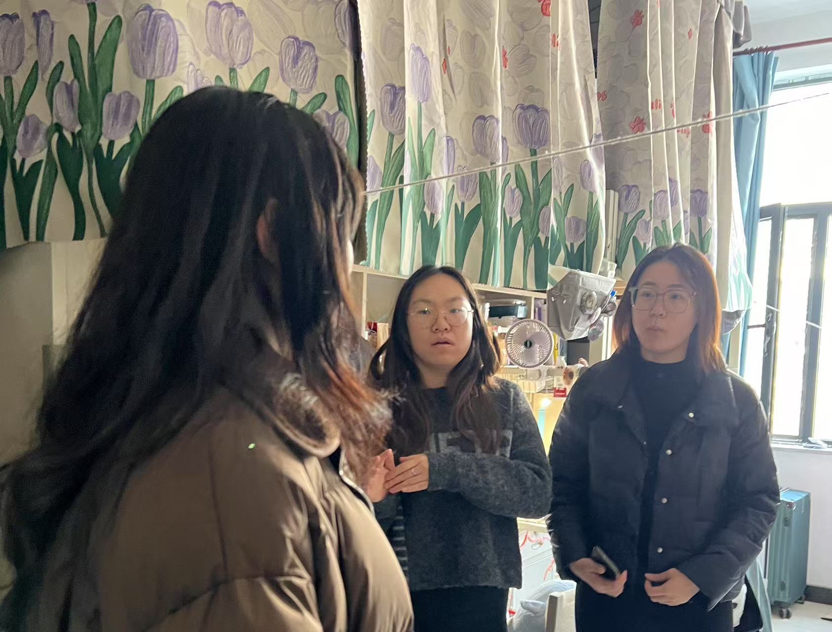 为响应学校开展“七个一”活动的号召,深入了解同学们的返校状态、生活中的需求与状况,确保大家拥有安全、舒适的居住环境,2025年3月5日下午,旅游与地理科学学院学工办主任夏师澄老师、辅导员张卓老师和兼职辅导员谷志伟老师开展了对全院各个年级寝室的走访工作。