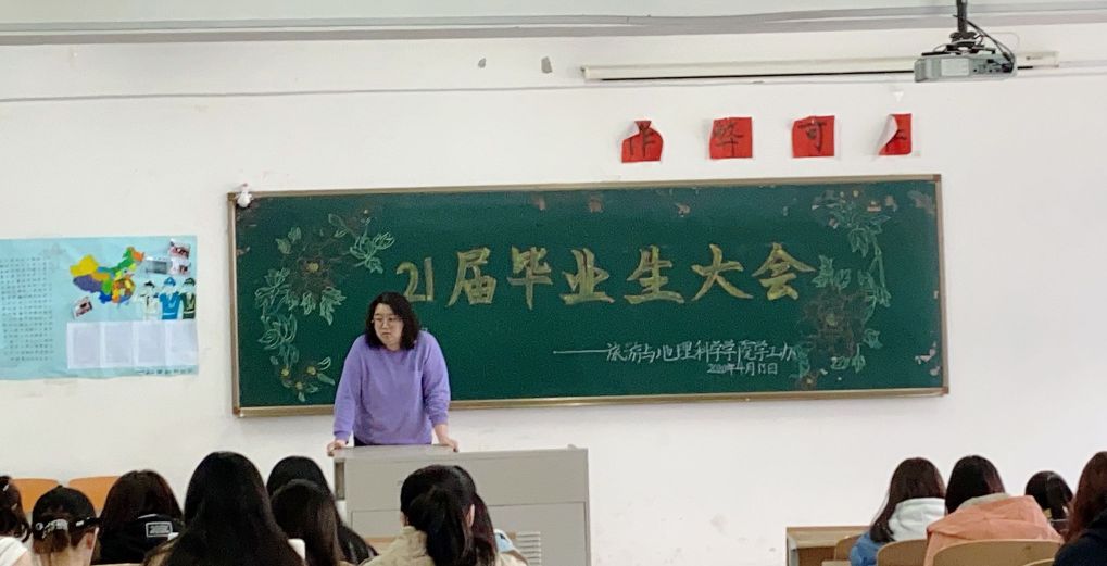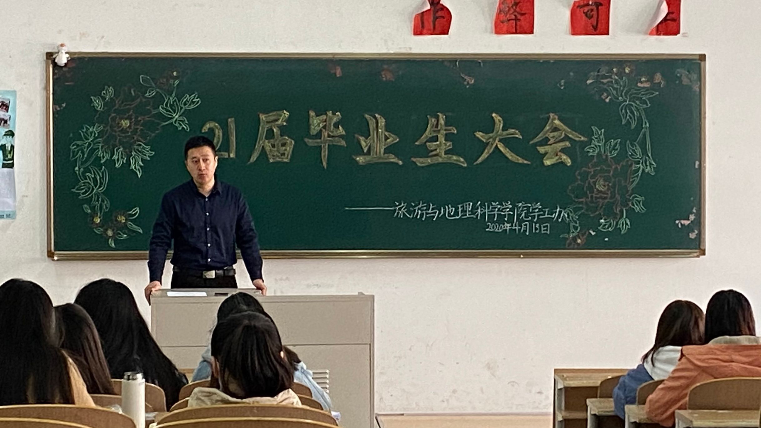 2021年4月13日,吉林师范大学博达学院旅游与地理科学学院2021届毕业班年级大会顺利举行,毕业生辅导员柳志明老师,副院长刘莹老师出席本次会议,旅地学院全体大四学生参加本次会议。