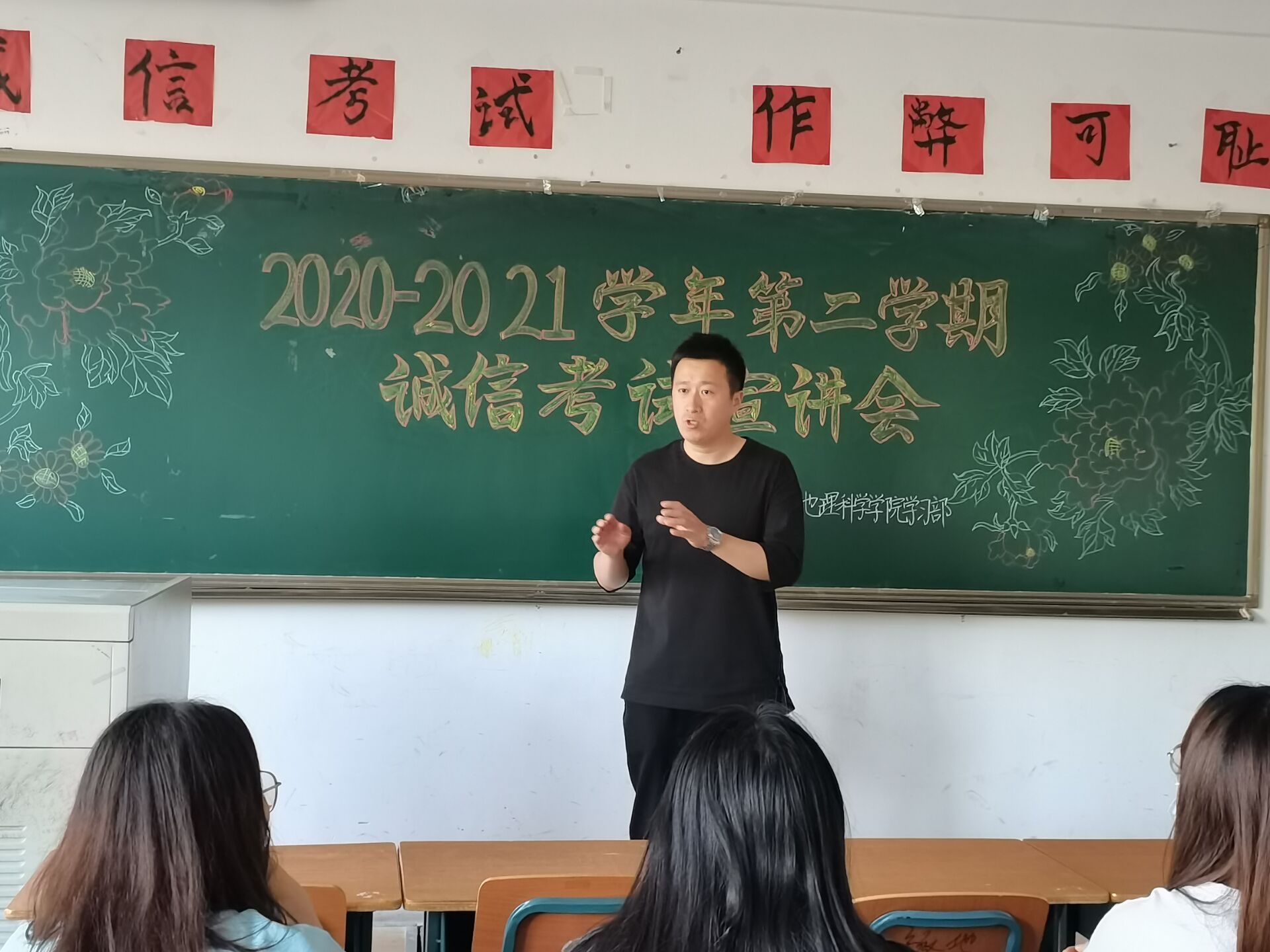 为进一步加强考风考纪建设,营造公平、公正、规范的考试氛围,弘扬诚实守信的道德风尚,吉林师范大学博达学院旅游与地理科学学院于2021年6月8日星期二下午在老校区3102教室召开诚信考试宣讲会。旅游与地理科学学院学工办主任柳志明老师主持会议并讲话,与会成员有18级、19级、20级各班学习委员。