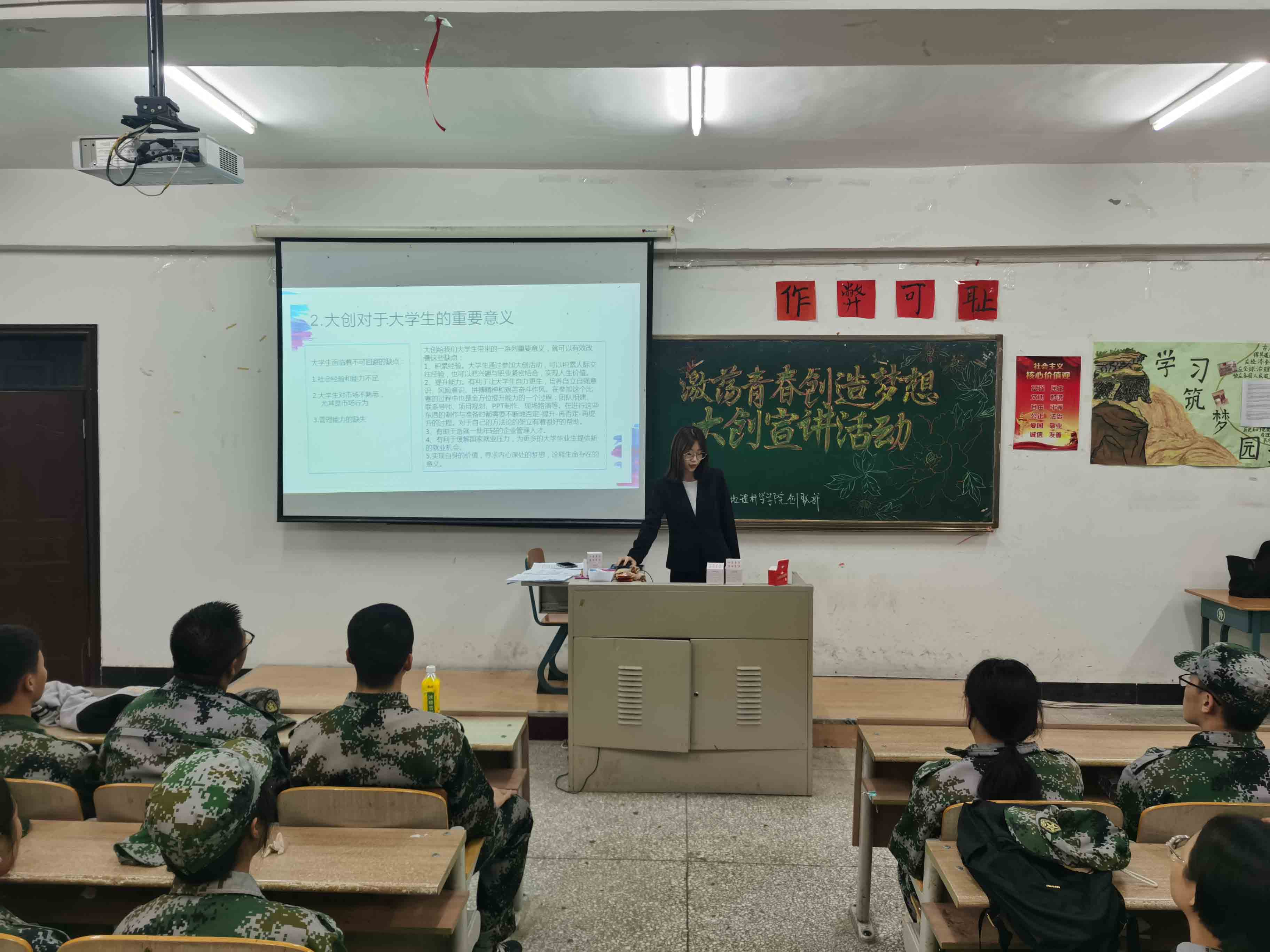 大学生创业有利于大学生谋求生存与自我价值实现、有利于实现人生梦想。因此,同学们应努力提高自身素质,秉持科学严谨的学习态度,培养团队精神与创新意识,坚持实事求是的工作作风。作为中国最具有活力的群体,青年大学生应把就业压力转化为创业动力,培养勇于开拓创新的精神,为实现中国梦贡献一份属于自己的力量!