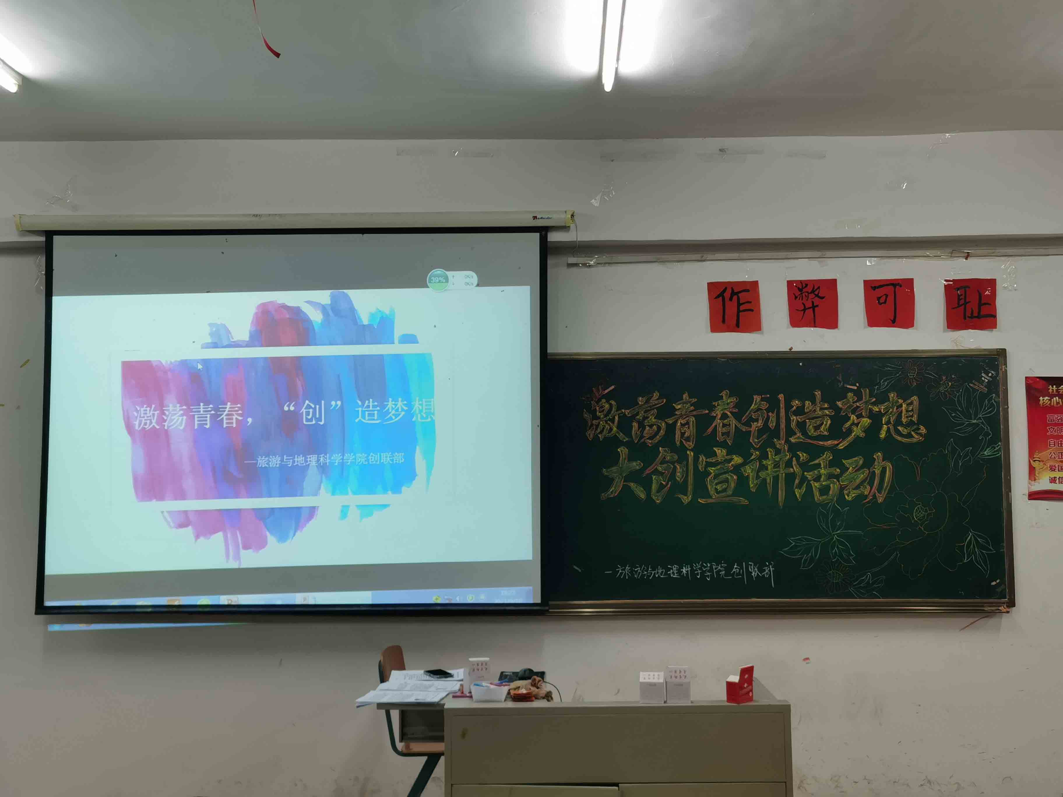 报告指出“大众创业,万众创新”是经济活力之源。为了培养大学生努力拼搏、敢于实现梦想的精神,旅游与地理科学学院于2021年9月10日星期五晚,在老校区3322教室召开了大学生创业宣讲大会。本次活动由旅地学院创联部主持举办,全体21级新生参与活动。