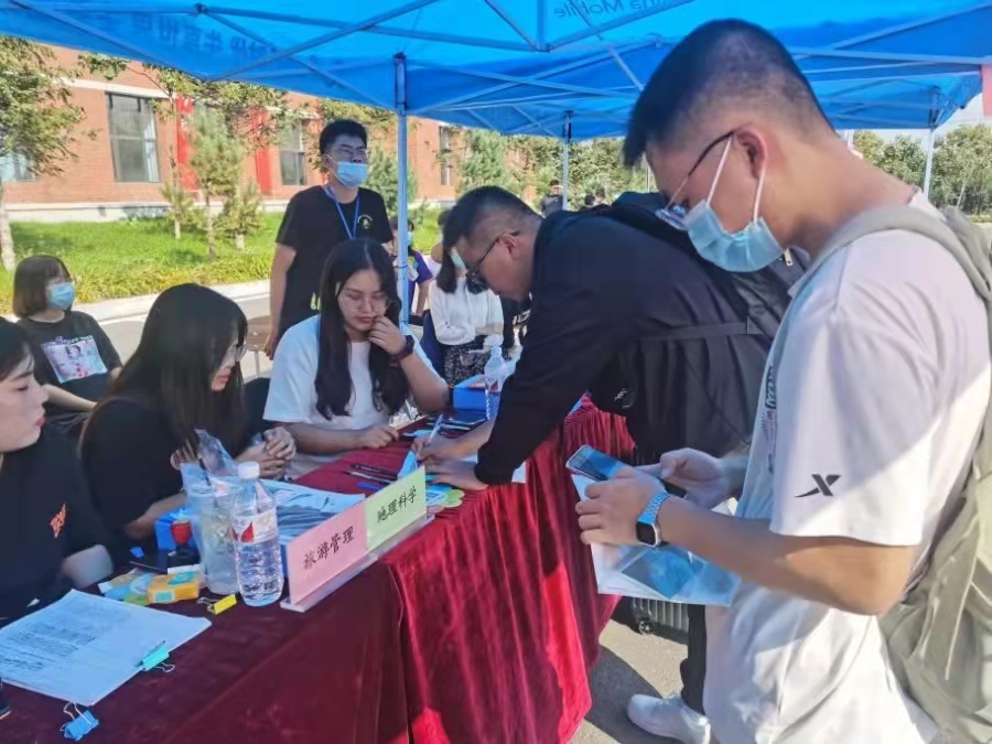 伴随着清晨的第一缕阳光,我们迎来了迎新工作的第二天。所有的准备工作都依据部署的计划,有条不紊的进行着,旅游与地理科学学院副院长刘莹老师、学工办主任柳志明老师、学工办何珊珊老师、地理科学专业杜松林老师、旅游管理专业刘秀实老师亲自来到迎新场地对团学联学生干部的迎新工作进行指导。伴随着新生们陆续到校,迎新工作迎来了小高峰。