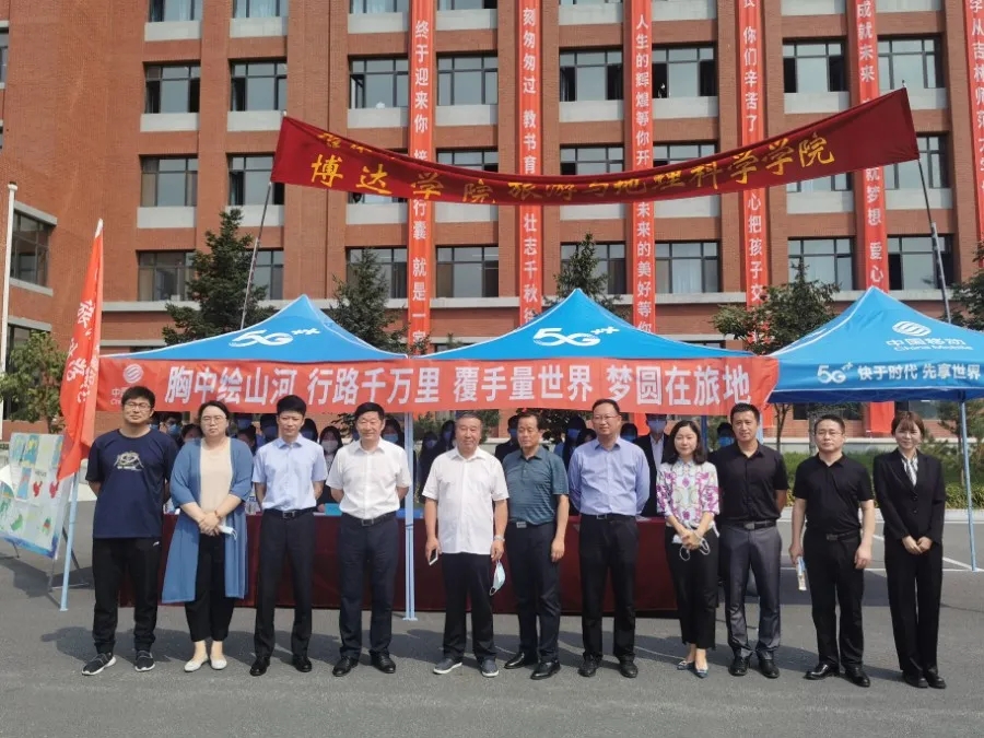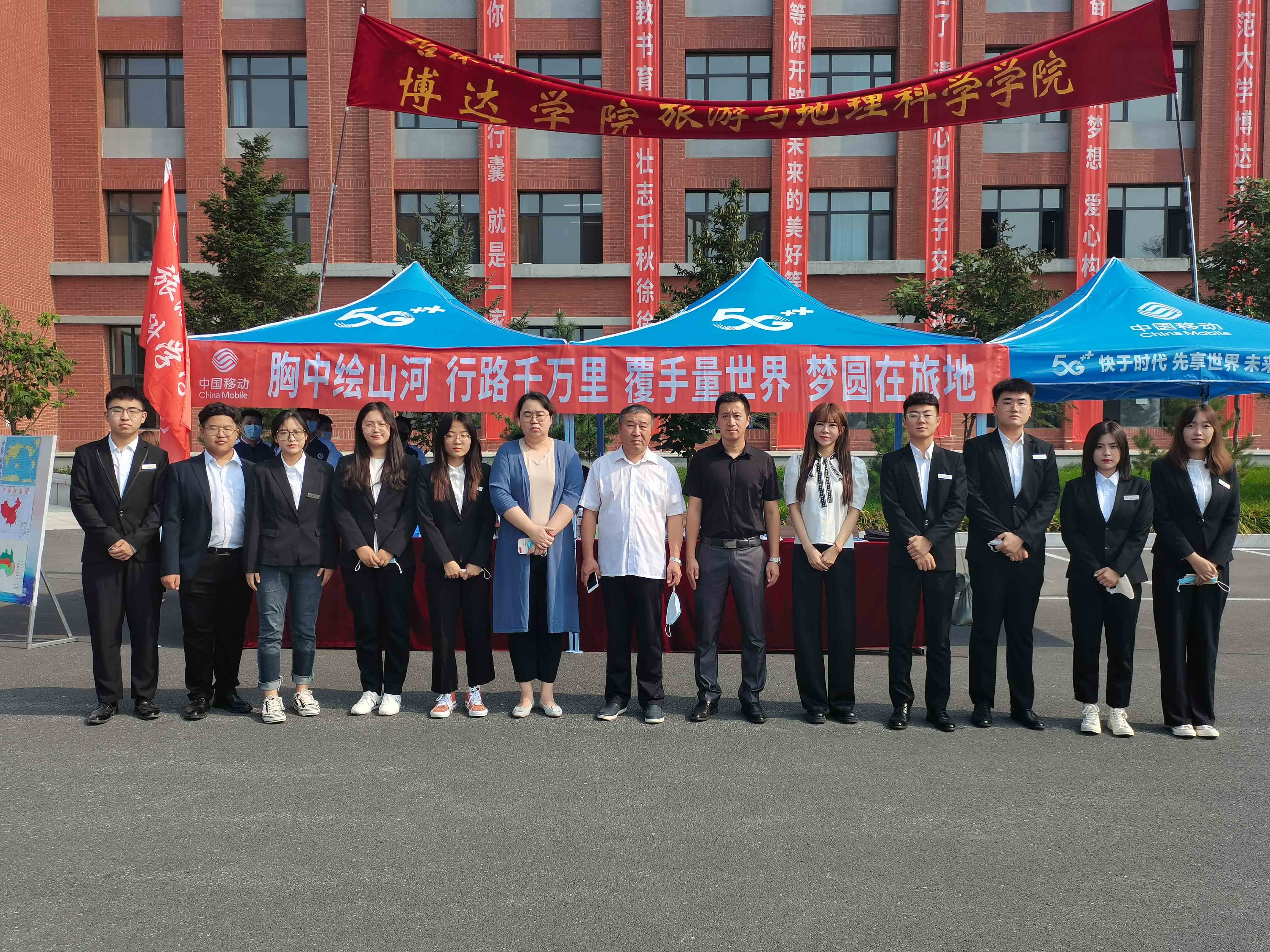 吉林师范大学博达学院校领导在迎新工作进行中来视察旅游与地理科学学院的迎新工作状况并且与旅游与地理科学学院院长梁雨华老师、 副院长刘莹老师 、学工办主任柳志明老师 、学工办何珊珊老师、地理科学专业李蒙老师进行合影留念。新生在宿舍布置的时候同样也感受到了来自老师的温暖,旅地学院院长梁雨华老师、副院长刘莹老师、学工办主任柳志明老师、学工办何珊珊老师前往新生寝室关怀慰问。