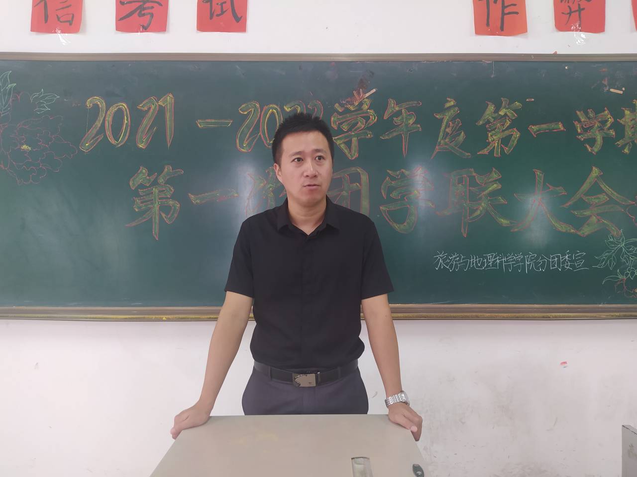 2021年8月29日旅游与地理科学学院在老校区三教3322教室举办了2021-2022学年度第一学期第一次团学联大会,在大会上由分团委书记柳志明老师主持召开会议。