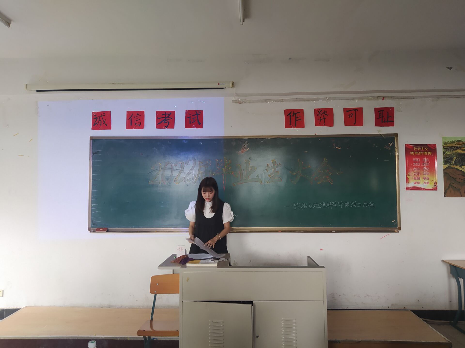 6月是毕业的季节,走着走着,他们走过了秋冬春夏,走过了流年似水,共同走过了三年时光。旅游与地理科学学院于2021年6月25日星期五下午在老校区3322教室召开了2022届毕业生大会,辅导员何珊珊老师主持本次会议。
