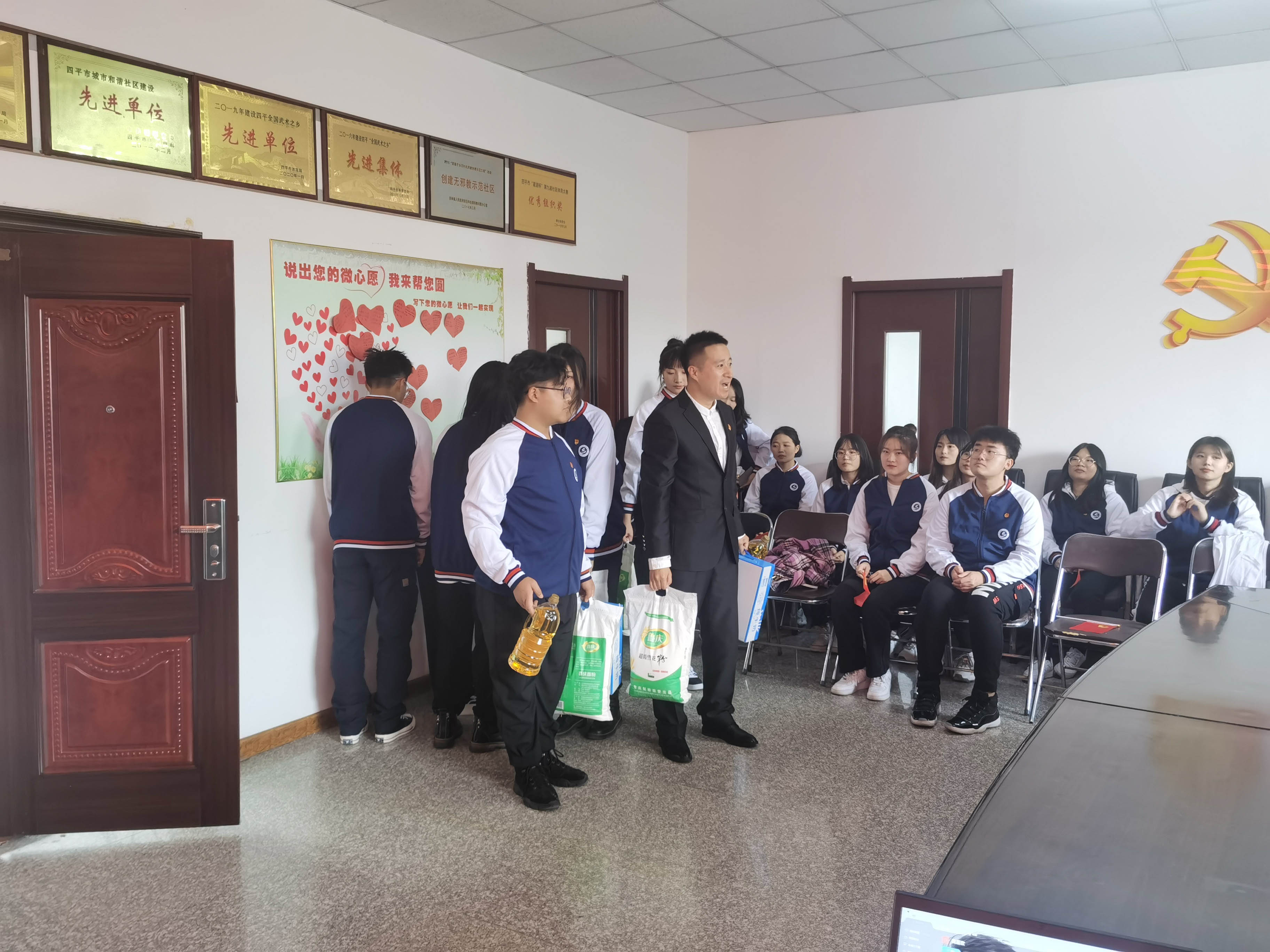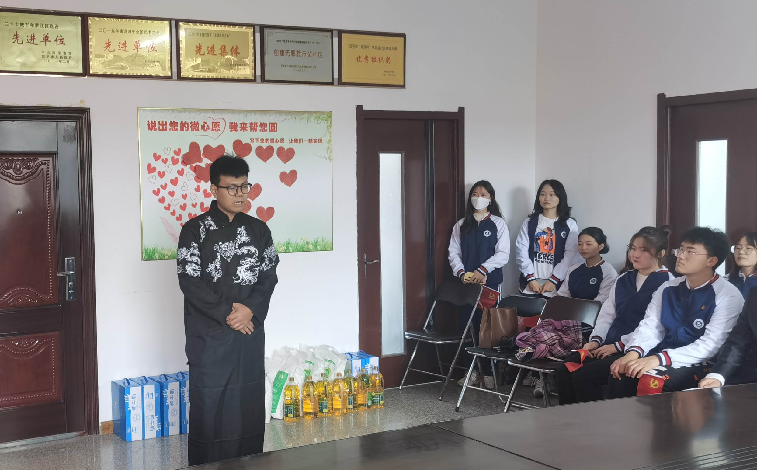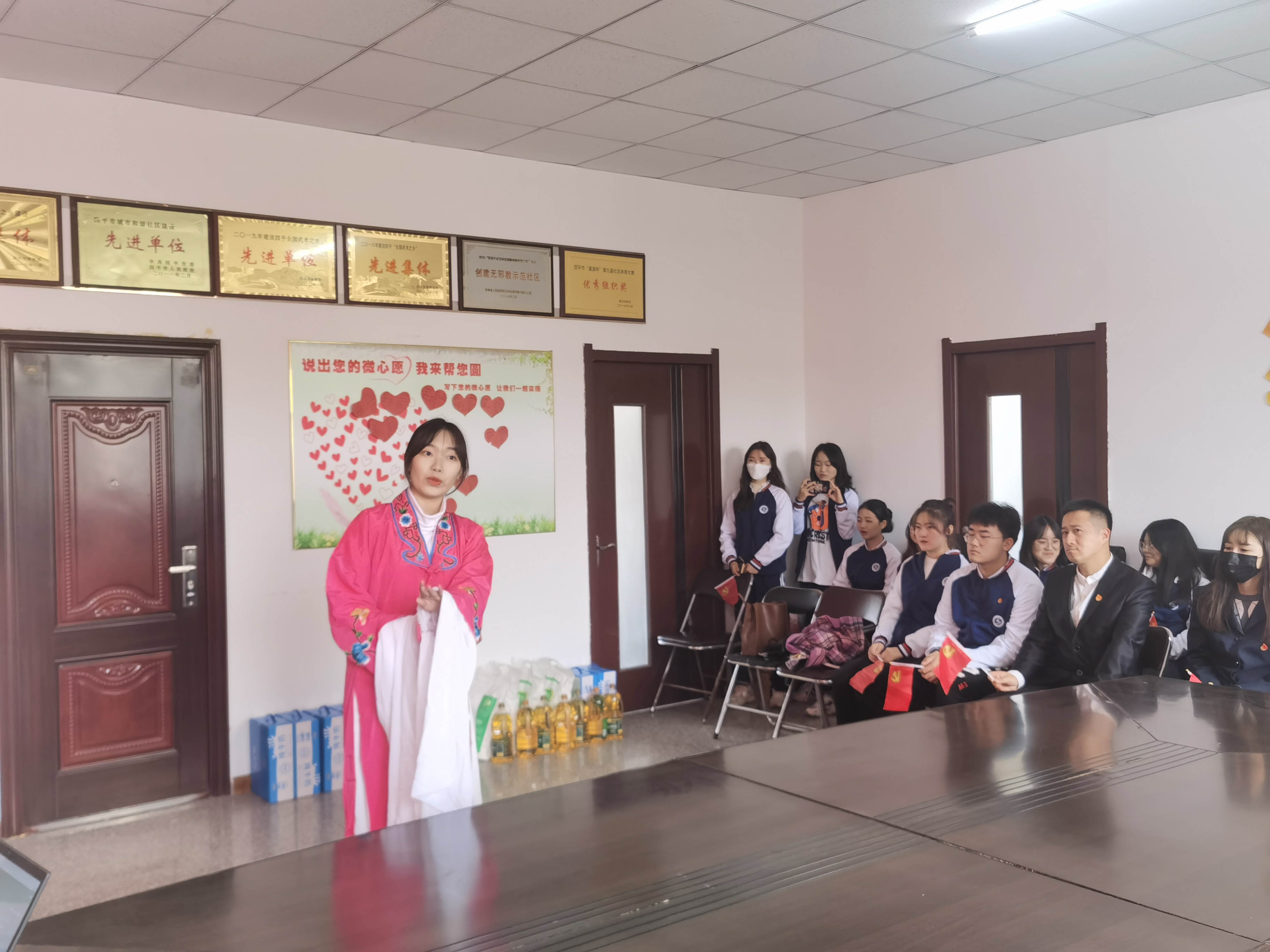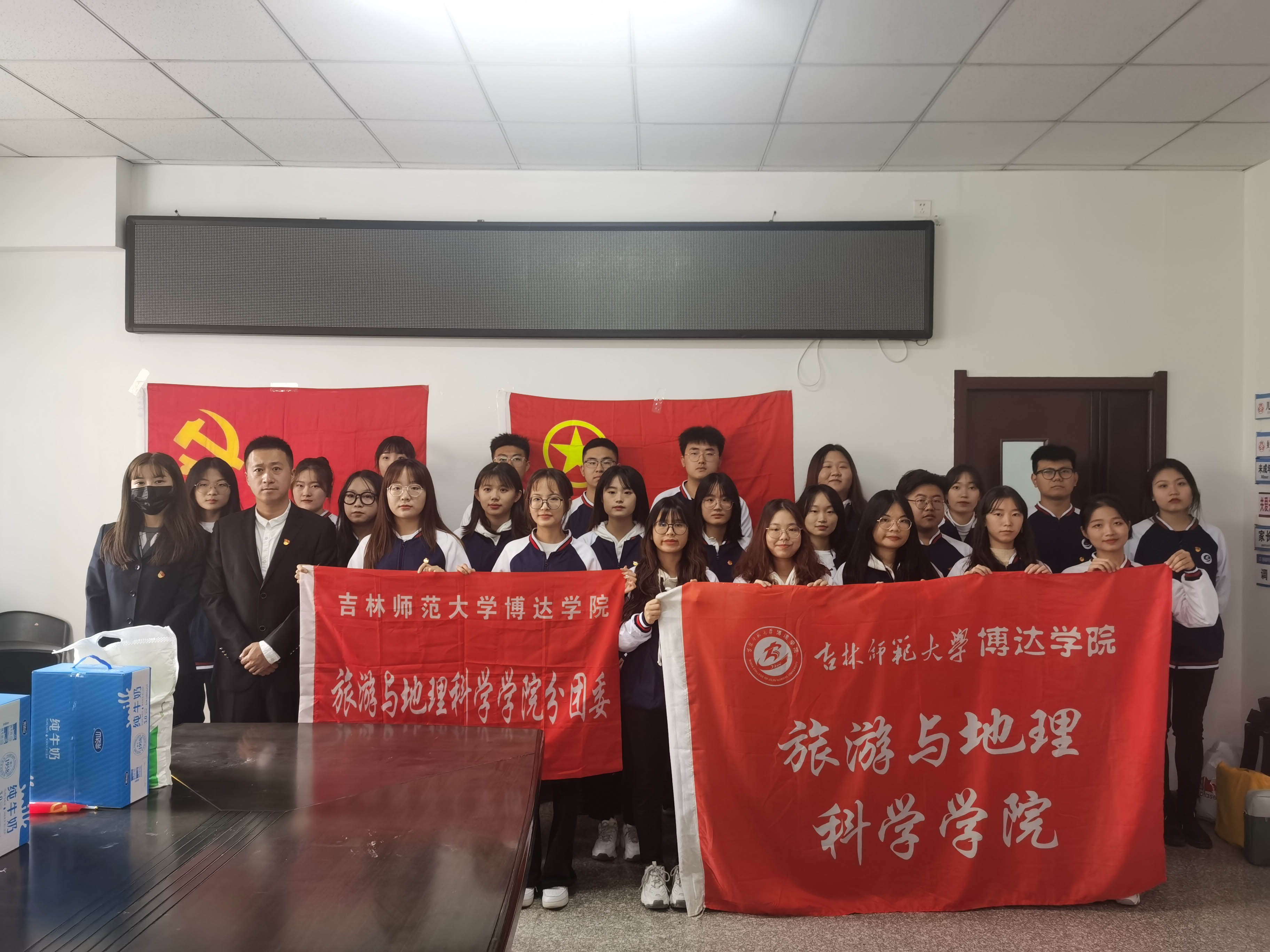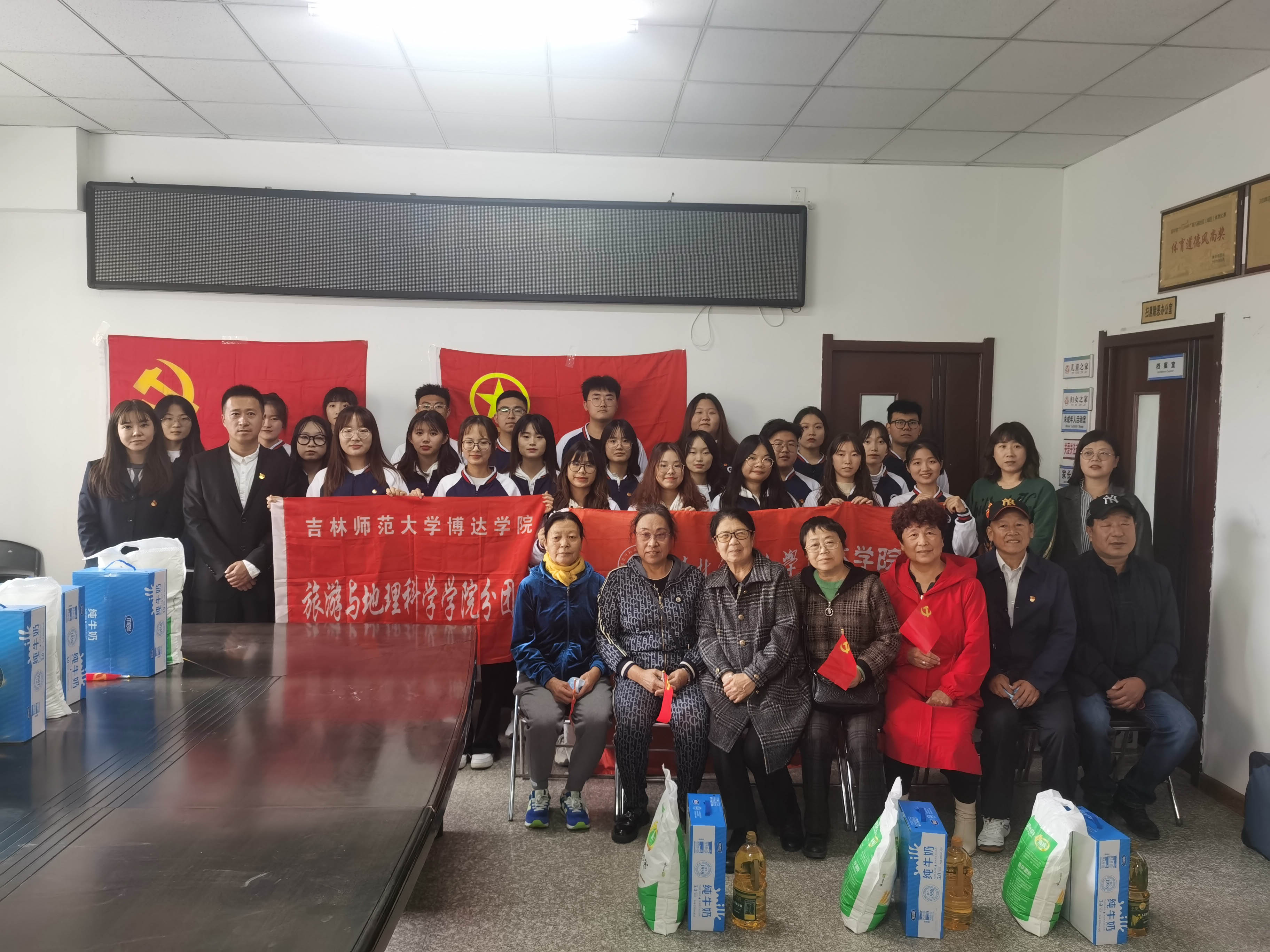 为了响应习近平总书记在中国共产党成立一百周年大会上的号召,让大学生可以更好的践行社会主义核心价值观,提高同学们对尊老、敬老、爱老、助老的四个意识、以及弘扬中华民族的传统美德,2021年10月13日星期三,吉林师范大学博达学院旅游与地理科学学院分团委特此举办了此次重阳敬老实践活动。直属党支部书记兼分团委书记柳志明同志、党员何珊珊同志、学生党员以及学生志愿者团队参加本次活动。