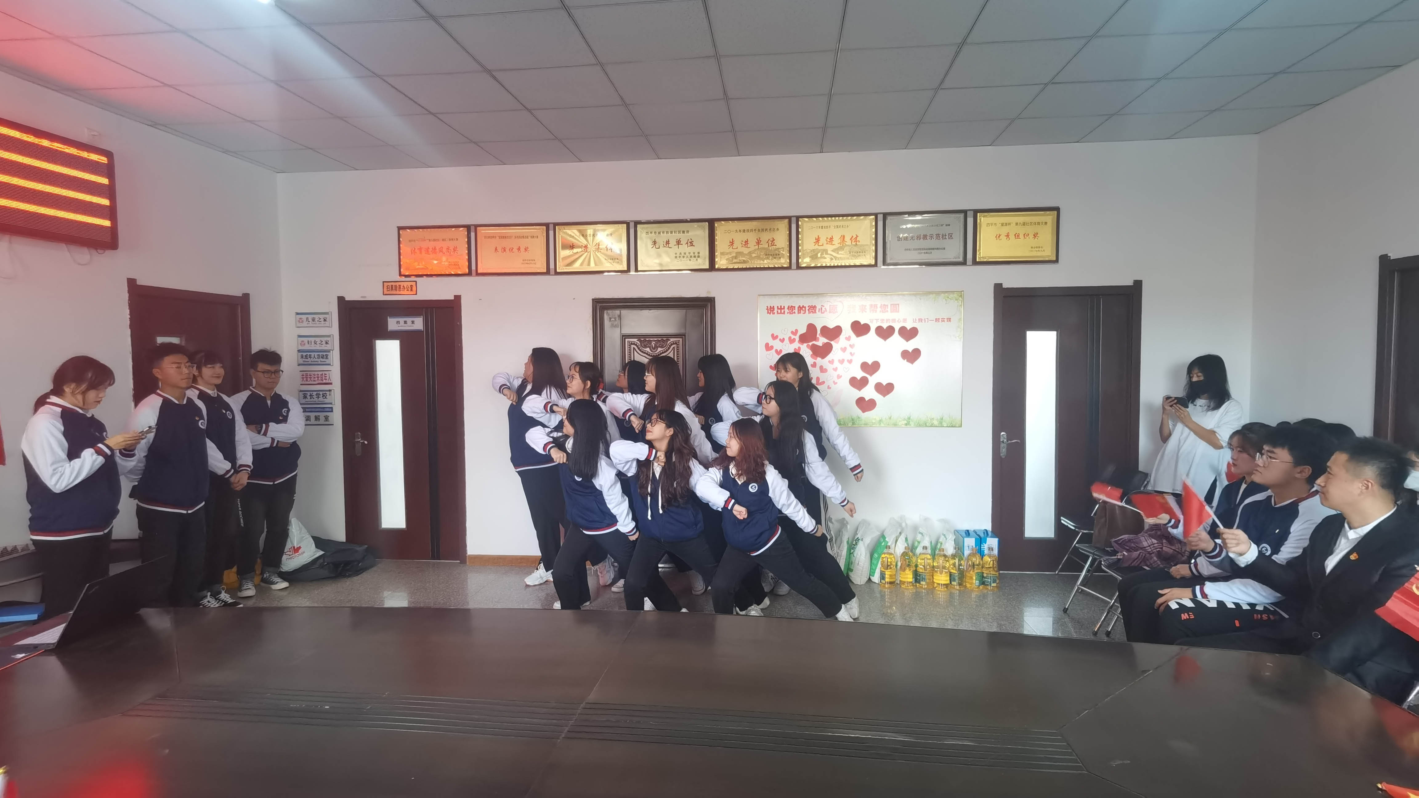 学生们在学校集合完毕后带上慰问品出发去师大社区,到达师大社区后,与老人们沟通交流,共同讲述中国共产党成立一百周年的伟大进程,并讲一些新闻热点和生活中的趣事,了解他们的心声并给老人们分发慰问品。活动期间志愿者们为老人们带来精彩的表演。最后旅地学院为老人们送祝福语并拍照留念。