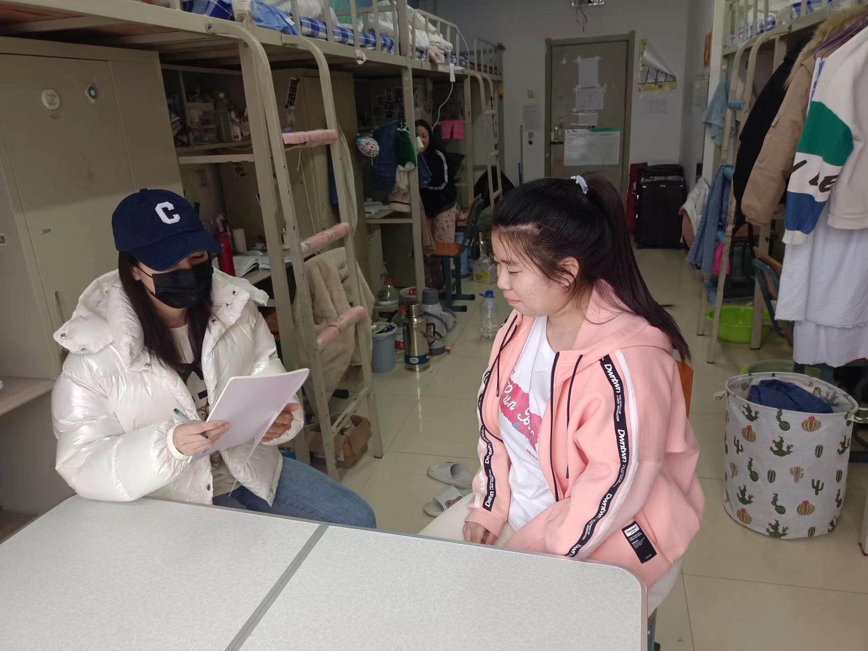 为了保证在疫情期间心理健康的问题,何珊珊老师多次前往学生寝室对学生进行关心。在这期间她对学生在网课期间的日常生活、学习情况等方面进行了充分的了解,嘱咐同学们有问题一定要及时联系她,她永远是我们的最后一道防线。