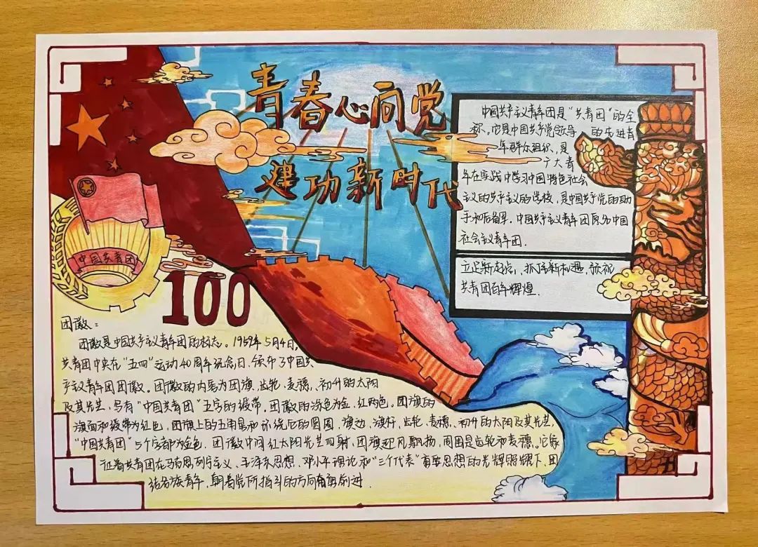 2022年5月5日是中国共青团成立100周年,为隆重纪念这一节日,激励和动员我院广大青年继承和发扬党的精神,形成勇于争先、乐于奉献的良好风气,增强团组织的凝聚力和战斗力,旅游与地理科学学院分团委宣传部为庆祝中国共青团成立100周年举办了“青春心向党,建功新时代”之庆祝中国共青团成立100周年手抄报设计大赛。