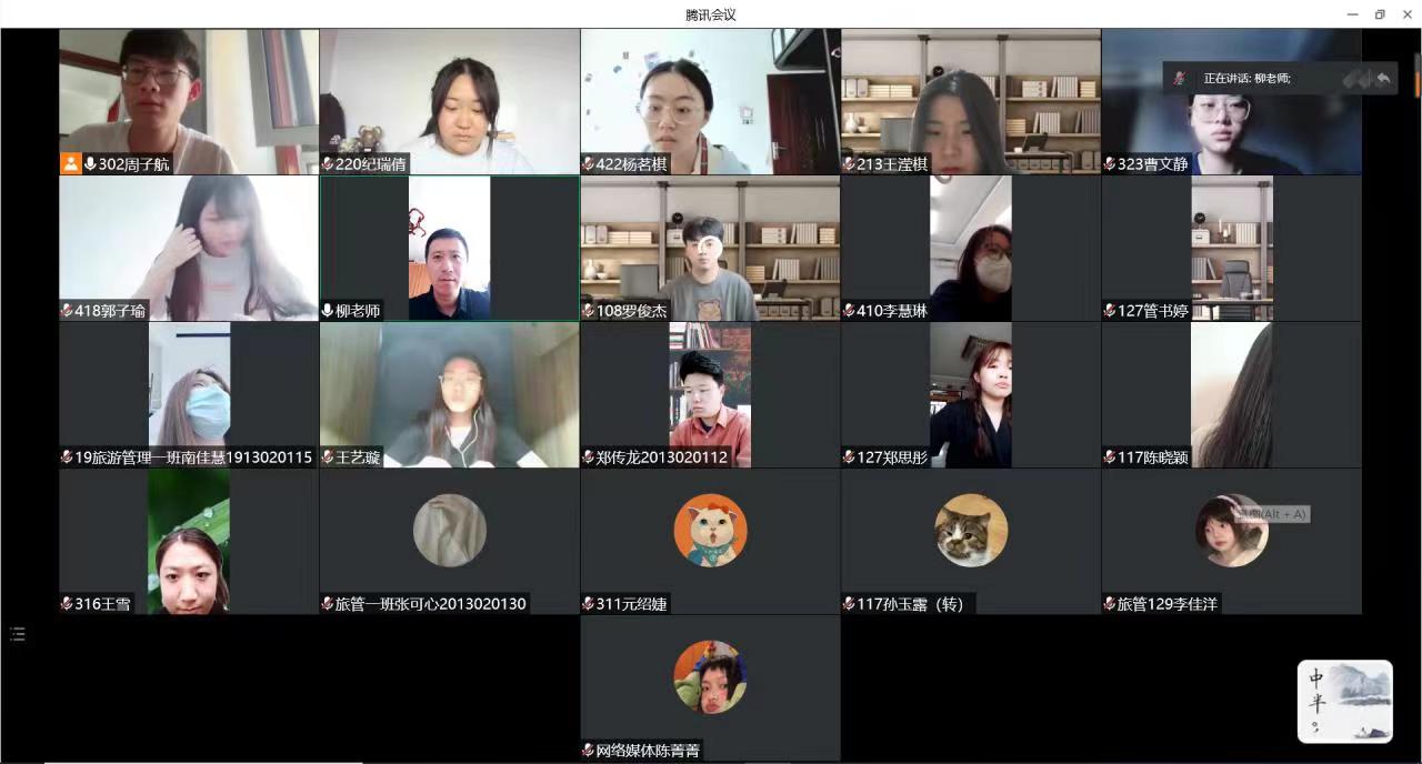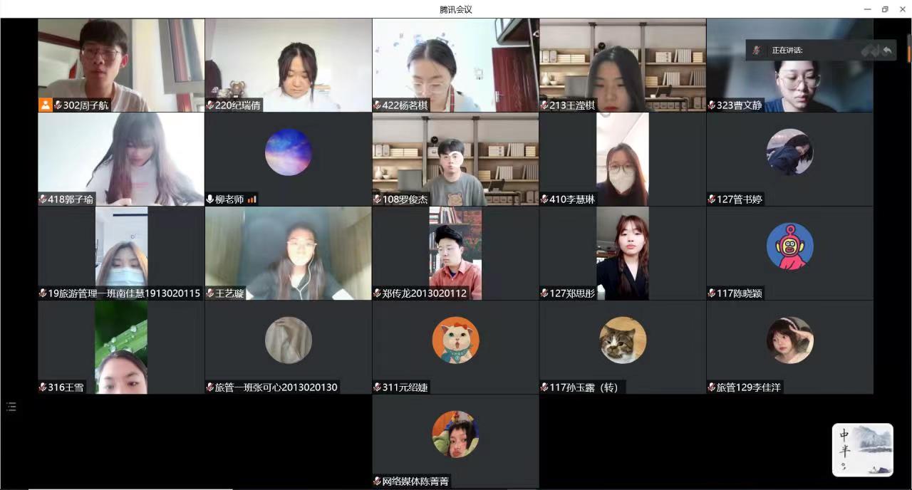 本次会议由周子航主持召开,由学工办主任柳志明老师总结陈词,参与者包括19-21级各班学习委员。