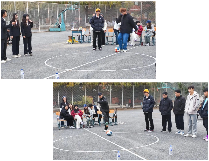 五个班级按顺序依次站好。两分钟内,进球最多的班级胜出。