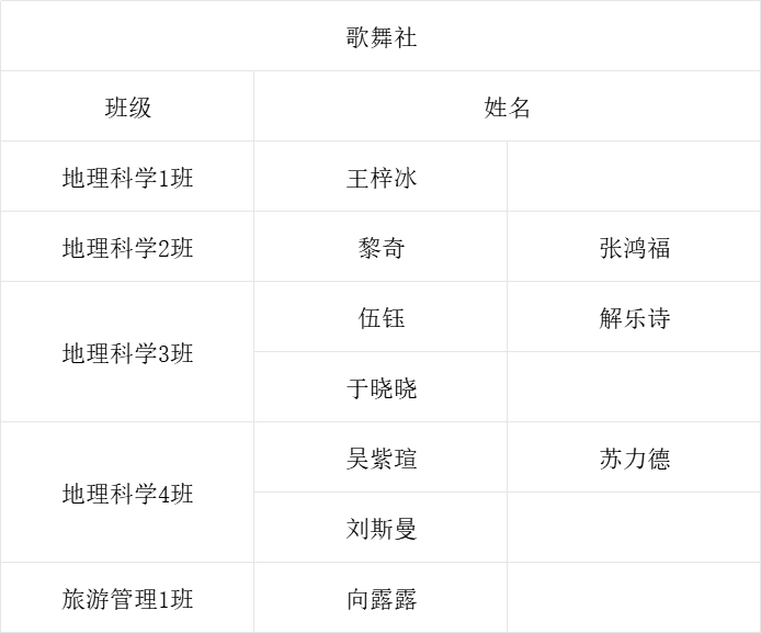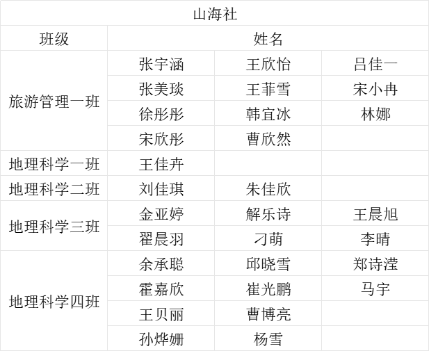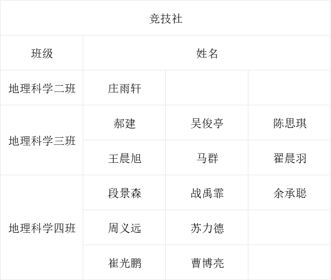 经过社管部和各社团社长的激烈讨论最终得出以下纳新名单: