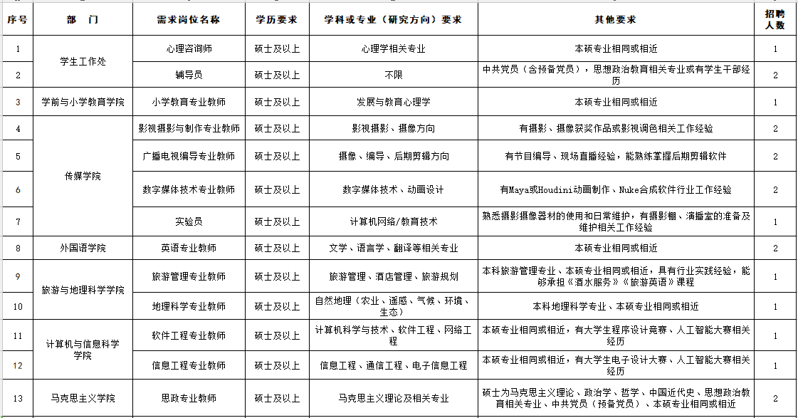 2.学校招聘工作统一由学院人事处负责组织实施,所有招聘信息均会通过我学校官网、官微发布,且不会以任何名义收取费用。对于学校未对外公开发布的招聘信息请求职者注意甄别、核实,勿轻信其他途径的虚假信息而上当受骗。