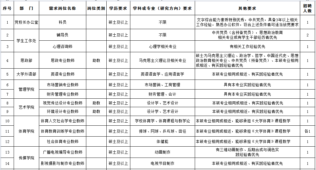2.学校招聘工作统一由学院人事处负责组织实施,所有招聘信息均会通过我学校官网、官微发布,且不会以任何名义收取费用。对于学校未对外公开发布的招聘信息请求职者注意甄别、核实,勿轻信其他途径的虚假信息而上当受骗。