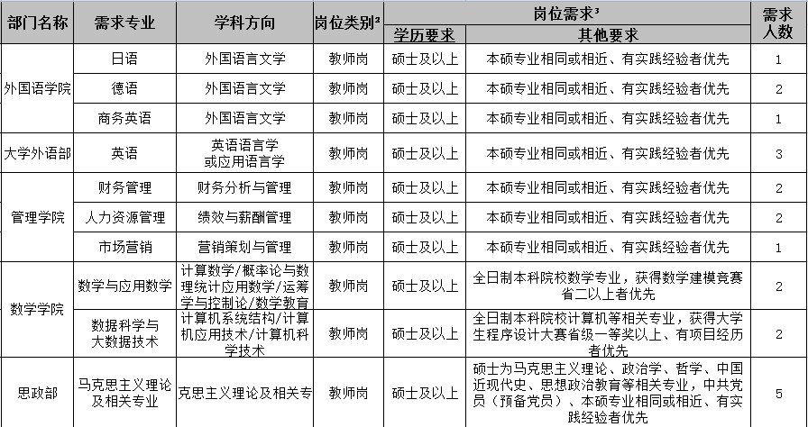 要求各岗位应聘者第一学历须为公办高校全日制本科,且硕士及以上学历,应聘教师岗位要求本硕专业相同或相近;海外学历须持有教育部留学归国服务证明;具有讲师及以上职称优先。