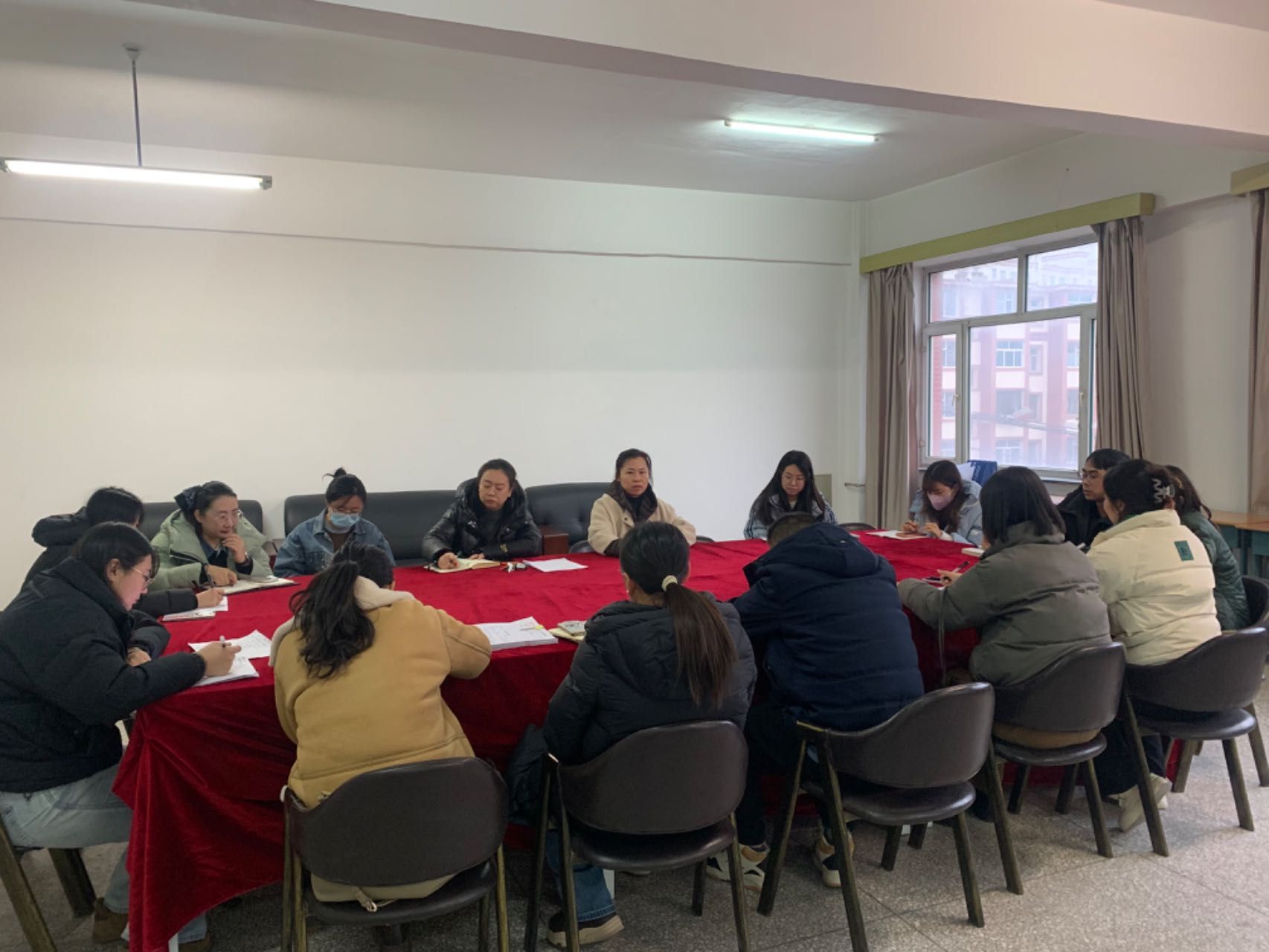 12月18日下午13:30,学院于老校区1339教研室召开本学期期末总结工作会议,会议由院长周晓梅主持,全体教职员工参会。
