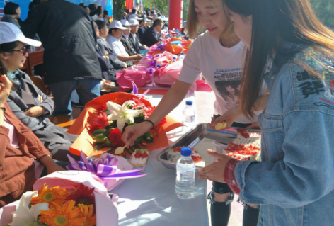 在运动会开幕式上,旗手们依次庄严地护卫着国旗、院旗进场,旗海方阵、花束方阵、裁判员方队、教工代表队和各系方阵依次入场。我系运动员身着白色实验服,面带笑容,昂首阔步的走向主席台,在台前训练有素的变换队形,高举画布,并献上同学们亲手制作的蛋糕。向主席台上的领导老师展示了我们食品工程系积极向上,拼搏进取的态度。