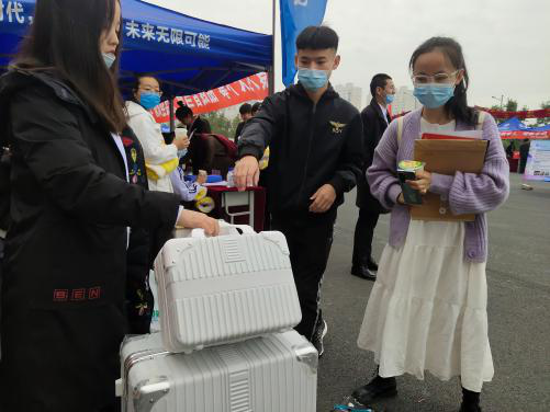 随着太阳从云朵后慢慢的探出面容,新同学也陆陆续续的到来。首先经过一号窗口核对个人信息,如有助学贷款将会来到二号绿色窗口,其次由我们的迎送人员带领我们的新同学办理手续,然后在四号窗口领取寝室信息,办理校园一卡通,最后会由我校提供的公交车接送同学们去往寝室区,方便新生转送行李物品等事宜。在此过程中我们的工作人员都会耐心细心的解答新生的和家长们的疑问,并介绍新学期的一些注意事项,尽量减少大家初到学校的不适和陌生感。