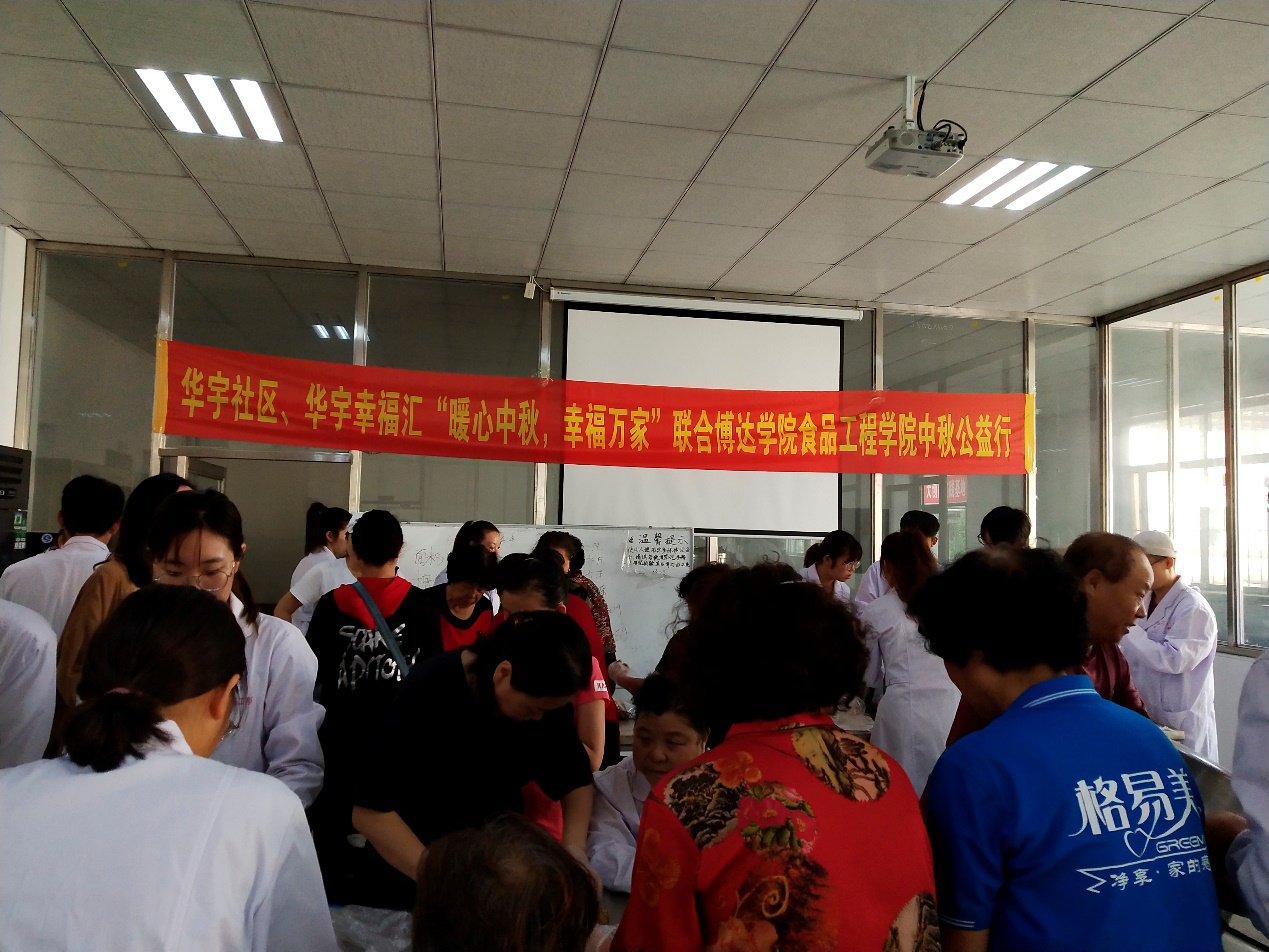 9月8日上午九点四教,吉林师范大学博达学院食品科学与工程学院与华宇社区、华宇幸福汇联合举行了“暖心中秋,幸福万家”中秋公益行活动。月饼将送给敬老院的老人们,为他们在中秋佳节送去温暖。本次活动由副院长吕慧威老师主持,院长周晓梅教授、专业课教师沈晓溪老师、华宇社区退休党员,17级于秀萍带领18级食品科学与工程专业部分学生参加了活动。