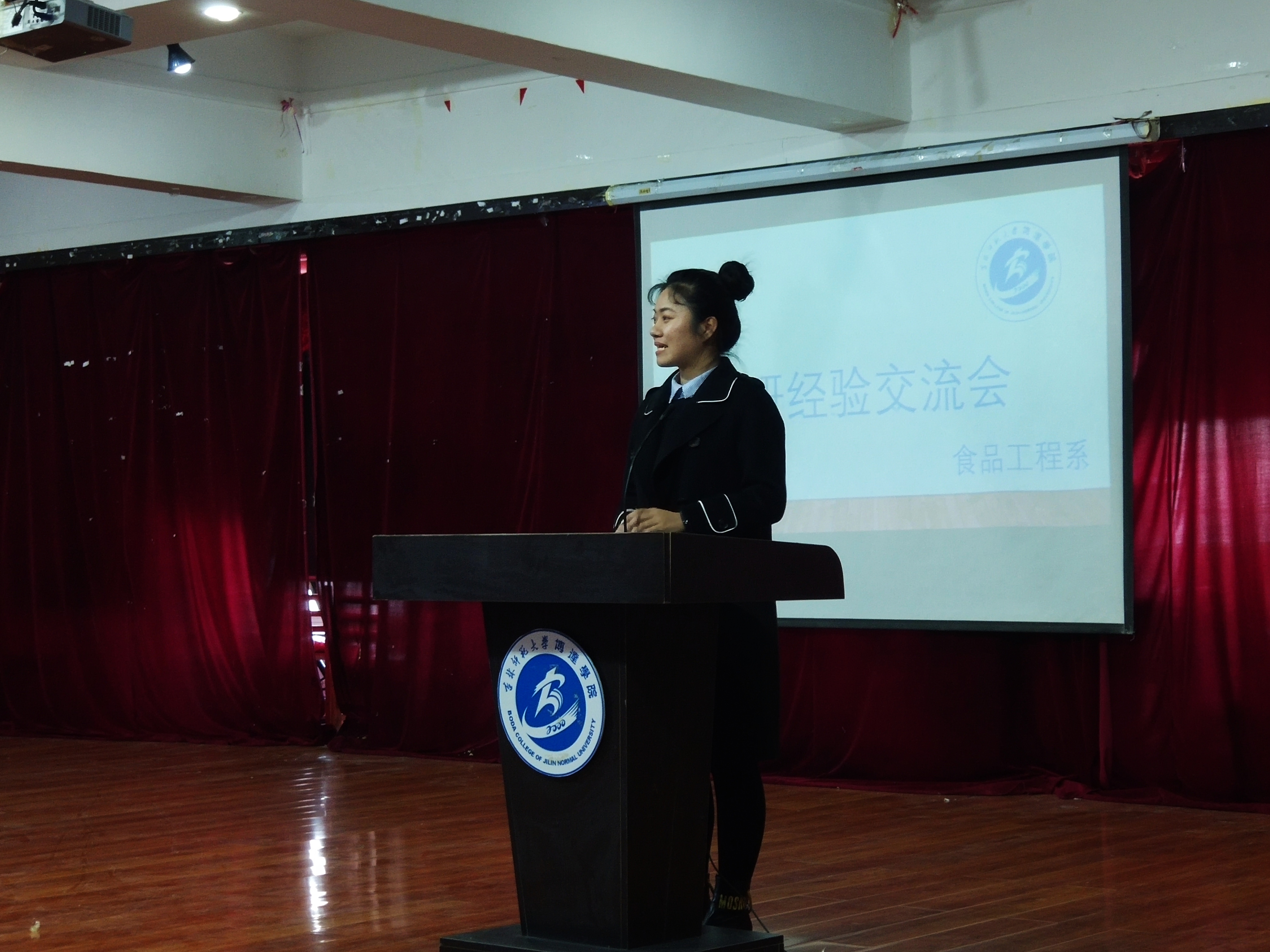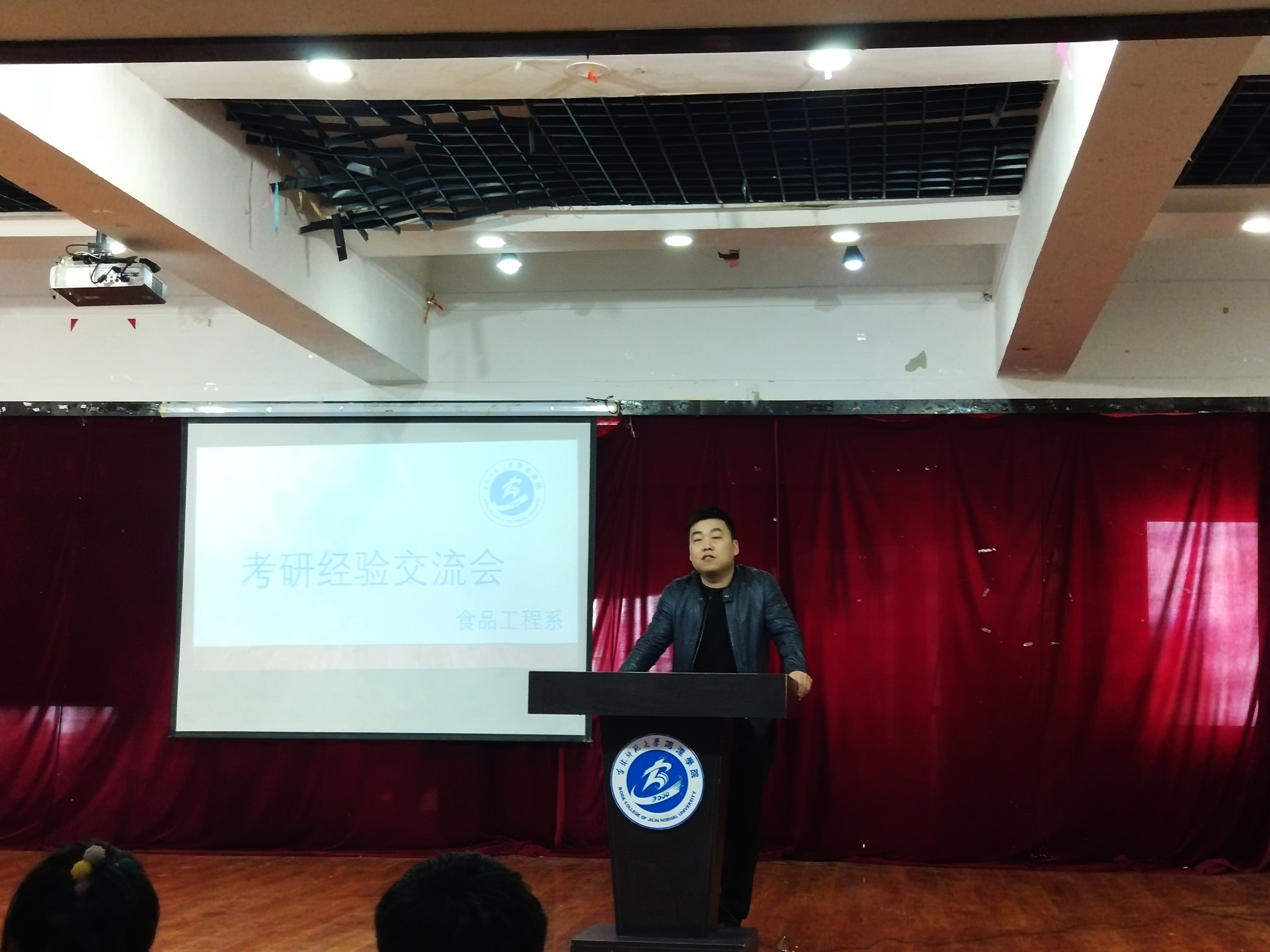 为了进一步提高学生考研热情,明确考研目标,掌握相关考研技巧,了解更多考研信息,2019年3月6日下午3:30,食品工程系在二教六报举办了考研经验交流会。本次交流会由学工办主任汤鹏宇老师主持,食品工程系主任周晓梅应邀出席会议并发表讲话, 在考研中取得优异成绩的15级学生杨晶、莫蓝月、李静三名同学分享了考研经验。
