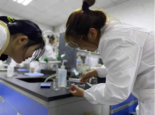 训练内容主要分三项。首先了解实验仪器及用具,其次清楚实验室操作基本规则,最后掌握实验的基本原理、方法。具体操作化学实验,包括酸碱度的滴定、粗盐提纯,食品中水分活度的测定,食品中还原糖的测定等。训练过程中,学生身穿实验服,态度认真而严谨。本次训练不仅是对学生实验操作的训练,还是对观察力和思维能力的培养。