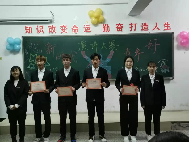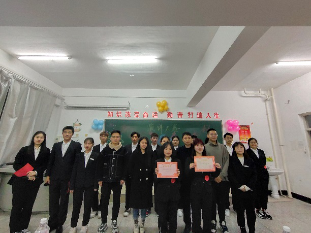 经过评审获得演讲赛三等奖的同学有赵国通、陈成、郑文波、李凤。由大学生自学组织总会岑金璐,学生部部长杜金为他们颁奖。