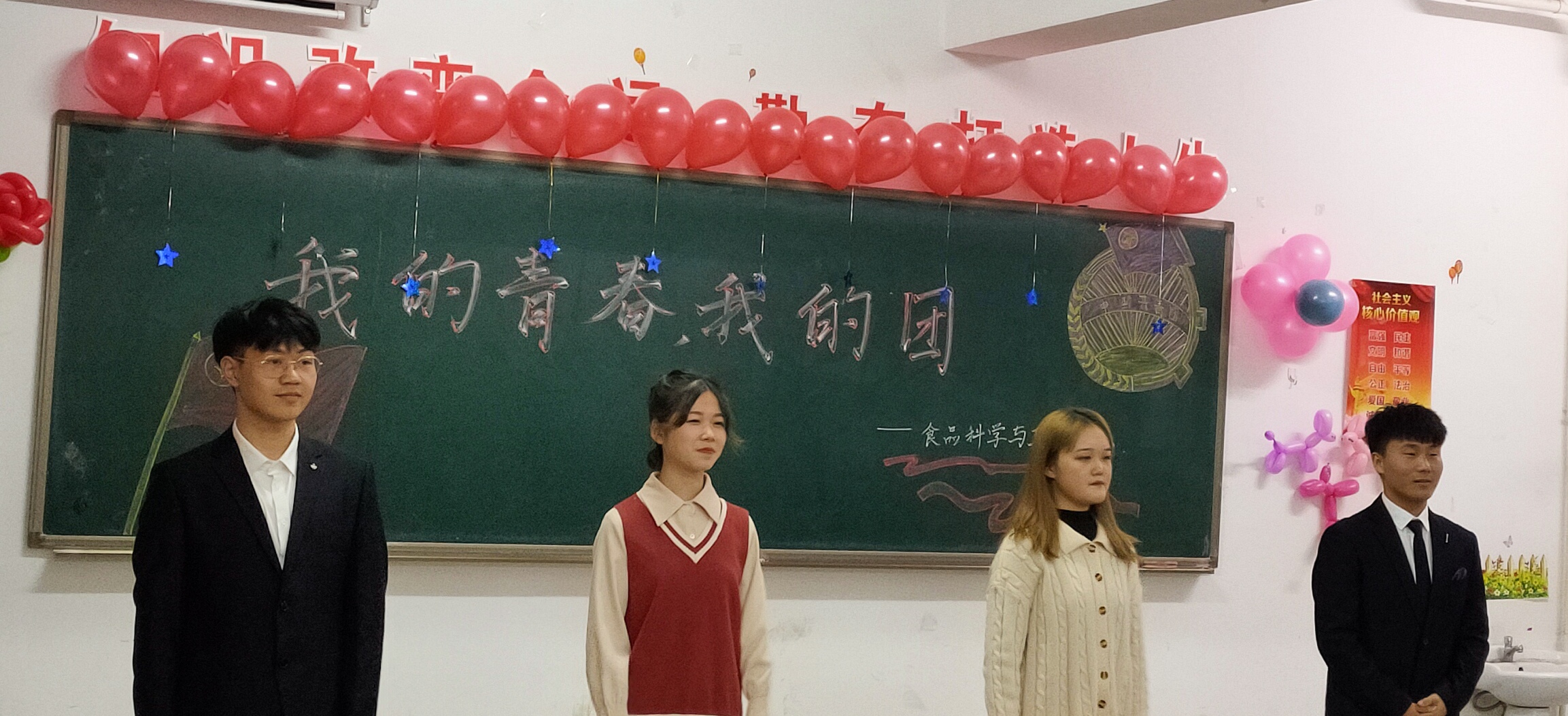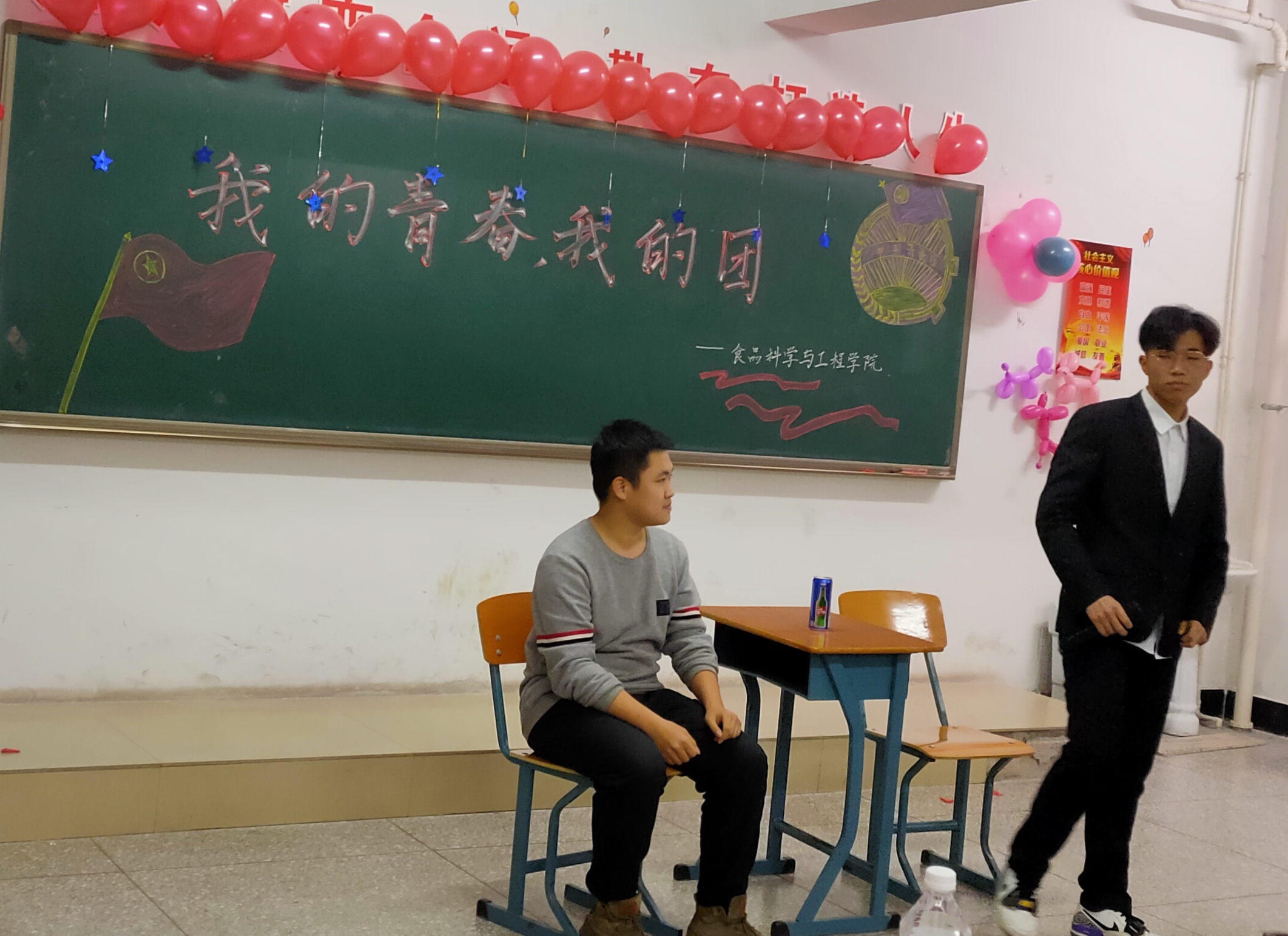 为唱响新时代的青春之歌,展现与时俱进的青春风貌,积极响应“新时代 新青年 新作为”活动号召,食品科学与工程学院于2020年11月12日在第一教学楼1316举行“我的青春,我的团”主题团日活动。出席本次团日活动的嘉宾有食品科学与工程学院学工办主任董莹老师、专职教师柴振宇老师、专职教师郝鑫老师以及食品科学与工程学院团学联各主席部长。