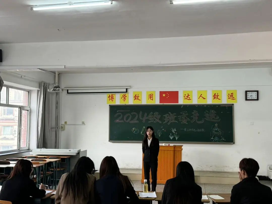 为增强同学们的主人翁意识、集体荣誉感和责任感,增强同学们的组织协调能力以及团队协作能力,提升沟通能力的同时增加人际交往能力,从而提升综合素质,培养领导力,体现责任感,食品科学与工程学院于10月22日8:00在老校区1318教室举办了2024级班级委员会竞选。食品科学与工程学院学工办副主任何珊珊老师、辅导员张晓哲老师、行政助理杨鑫鑫老师以及学生干部出席本次竞选。