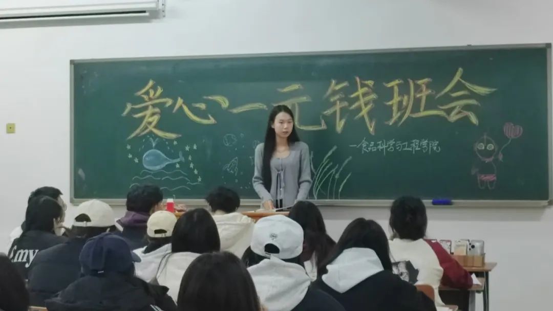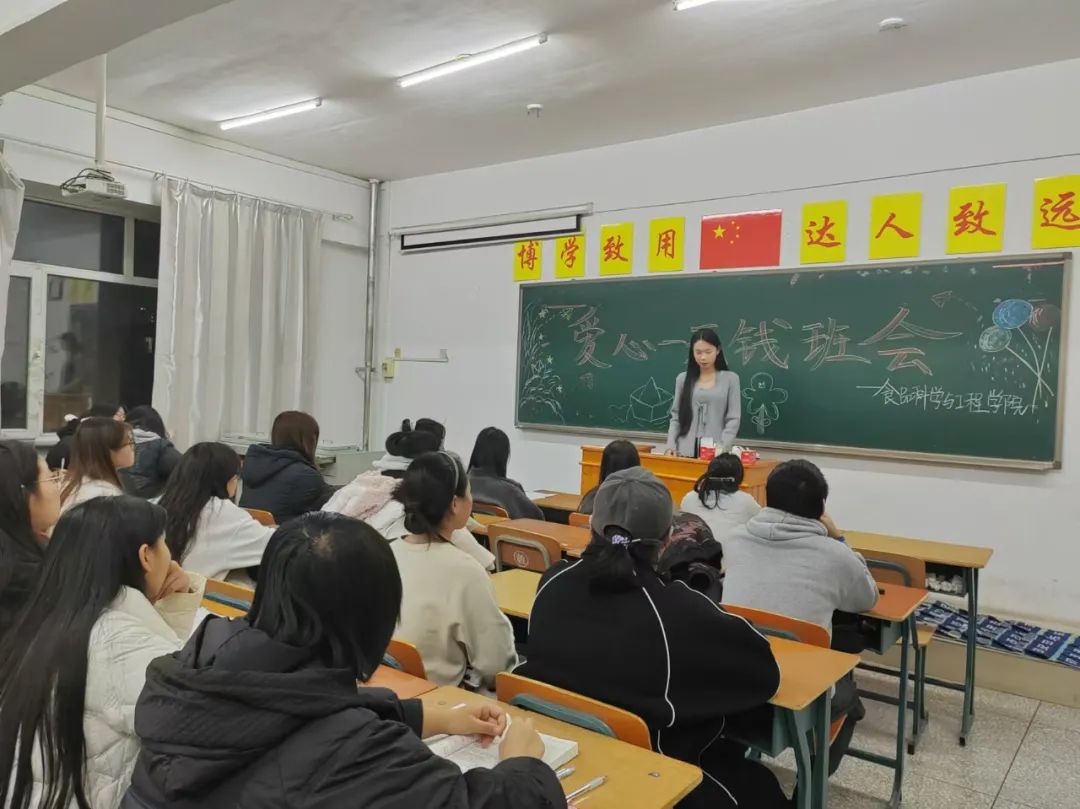 “爱心一元钱”资助是为了资助贫困学生完成学业的爱心工程。此次活动传递了关爱与温暖,弘扬了社会正能量。食品科学与工程学院于2024年11月12日18:30在老校区1316教室、1318教室举行“爱心一元钱”资助活动。这场活动不仅凝聚了食品科学与工程学院同学们的爱心与力量,更是一次将专业素养与社会责任深度融合的生动实践,展现了食品科学与工程学院学生们无私奉献、回馈社会的崇高精神。