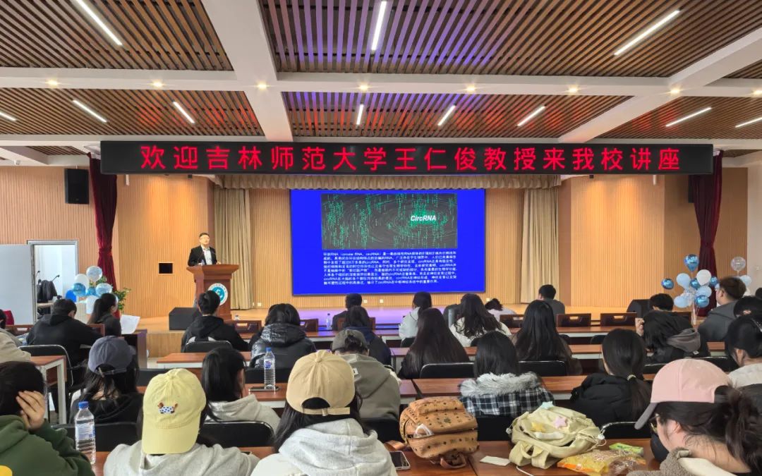 食品科学与工程学院于2025年4月2日13:00分在新校区图书馆报告厅,有幸请到了吉林农业大学程岩教授(博士生导师)和吉林师范大学王仁俊教授(博士生导师)开展了“食药同源生物材料构建及其在健康领域的应用研究”和“下丘脑室旁核环状RNA-TRERF1对慢性心力衰竭中交感神经兴奋的影响及其机制”学术讲座。参加本次讲座的有23—24级的全体学生、22级部分学生和食品学院全体教师。本次讲座提高了学生们的知识水平和思维能力等。