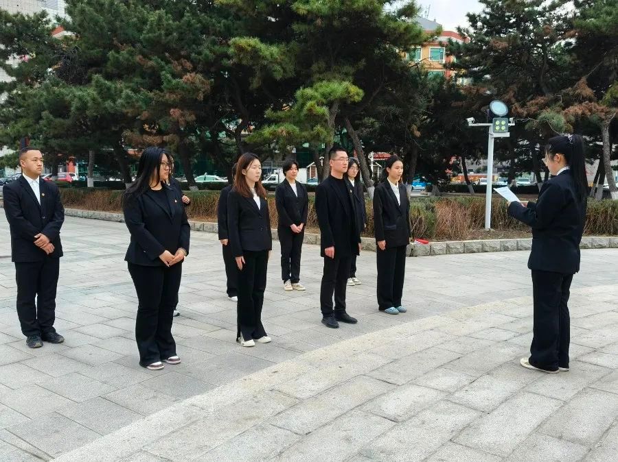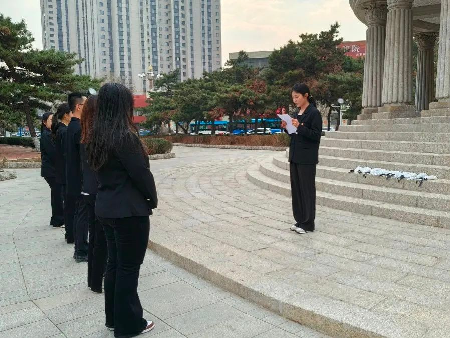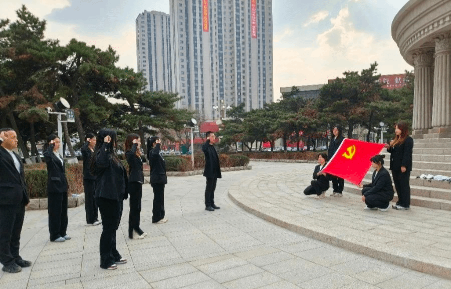 接着,张宇老师领誓,全体党员面向党旗庄严重温入党誓词,铭记初心使命。最后,全体成员在纪念塔前,伴着党旗、院旗,合影留念,定格这庄重且意义非凡的时刻。此次活动,大家在缅怀中汲取力量,坚定传承英烈精神的信念。