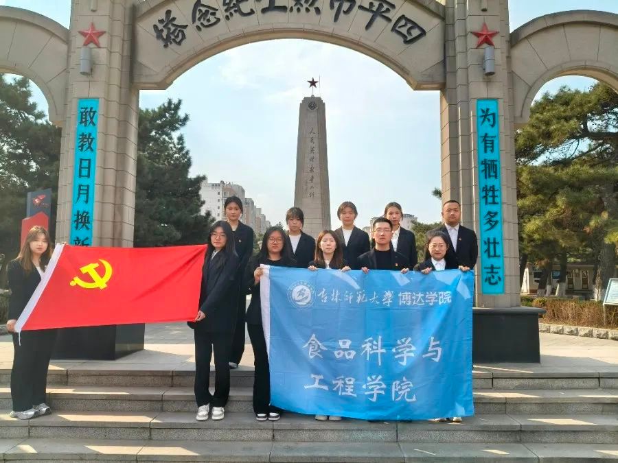 在清明节即将来临之际,为缅怀革命先烈,强化对学生传承红色精神的思想教育,2025年4月2日下午15:00,吉林师范大学博达学院食品科学与工程学院直属党支部携分团委前往四平市烈士纪念塔,开展了“铭记历史,缅怀英烈”主题党日活动。活动现场,庄严肃穆的氛围让每个人都深刻感受到革命先辈们的崇高精神。同学们怀着崇敬之心,向烈士们致以最诚挚的敬意。