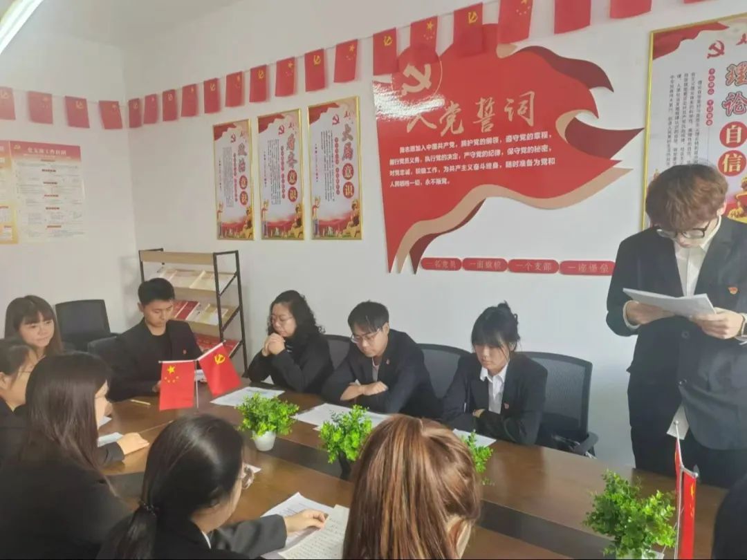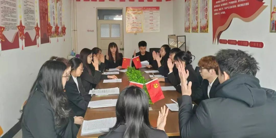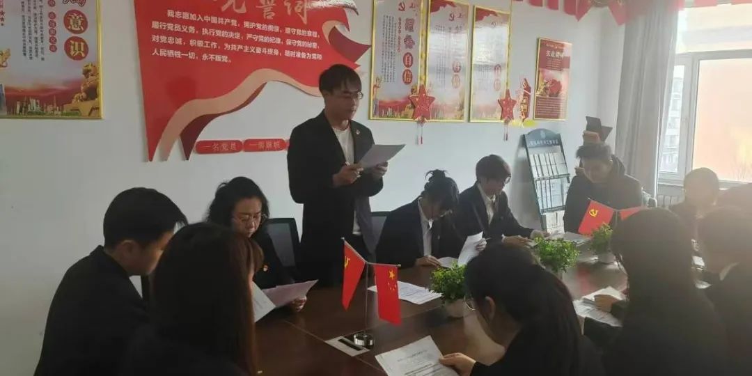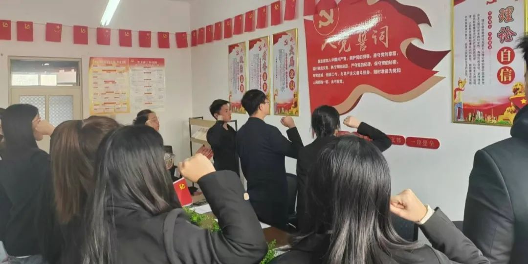 最后进行大会最后一项,由组织委员张晓哲同志带全体党员进行宣誓。