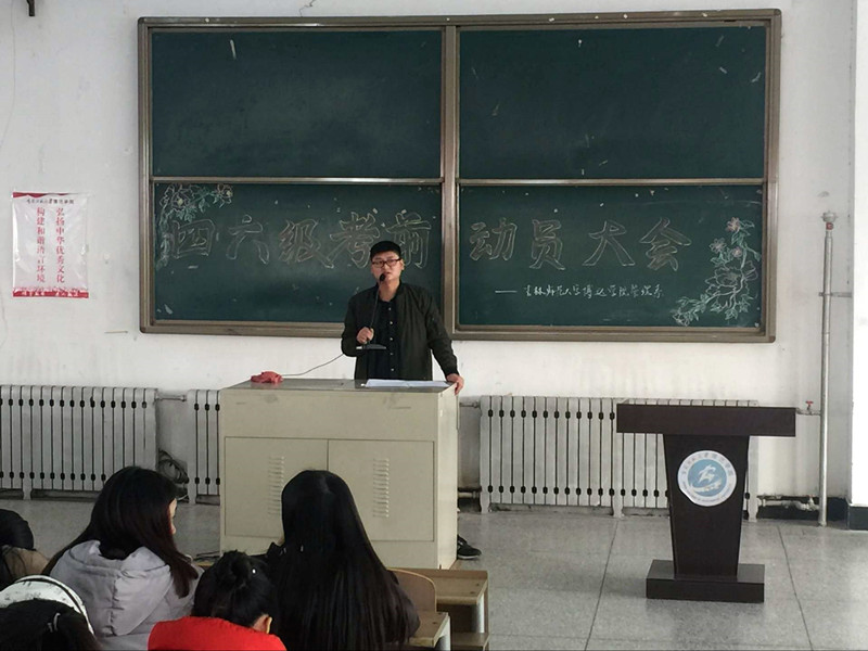 为了帮助同学们顺利通过即将到来的全国英语四六级考试,鼓励同学发扬实事求是的精神,诚信考试,端正考风,严肃考纪,树立正确的考试态度,11月28日中午12点整,吉林师范大学博达学院管理系在3601教室召开了英语四六级考前诚信动员大会,此次会议由我系辅导员段玉昌老师主持。