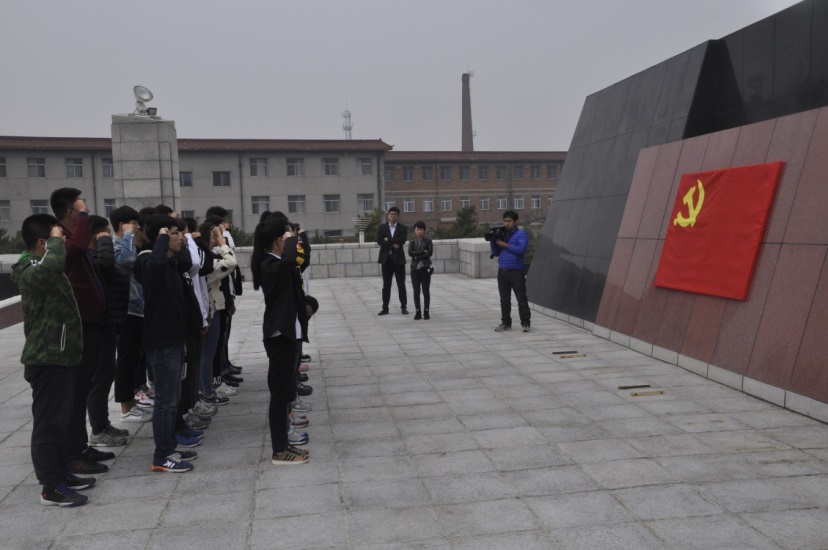 在讲解员的带领下,我们走过用战争的残骸修建好的桥,有序的参观了革命烈士纪念塔、革命烈士合葬墓、革命烈士万人墙以及无名烈士纪念碑等,大家又认真听了讲解员介绍一些革命烈士的英雄事迹。在讲解中,仿佛重现了血雨腥风的战争岁月,中华民族的优秀儿女们为了人民的幸福生活,不惜抛头颅,洒热血的场景。这更让同学们深切地体会到,今天的幸福生活来之不易,是先烈们用生命换来的。临走之前,我们面向党旗,在分团委副书记的带领下庄严宣誓。在这里我们留下了哀思,却带走了革命烈士永垂不朽的爱国激情。