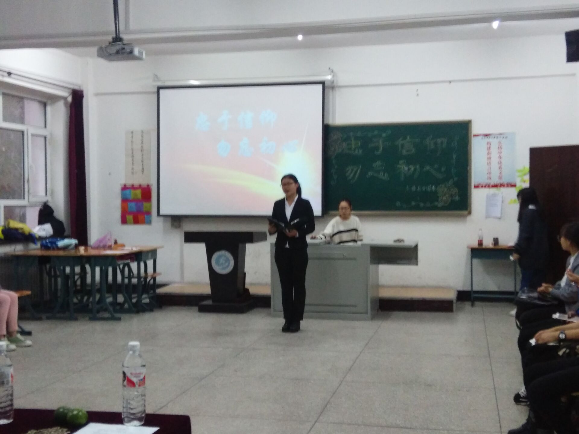 活动在倪曳青等五位同学激情澎湃的诗朗诵声中拉开帷幕,随后我们在四名同学的读书讲解中体会了先烈的党性以及不屈不挠的精神,其中穿插着对联展示、小品欣赏等节目,活动内容紧凑,环环相扣,层层递进。在观看电影《私人订制》后,在座同学们产生了许多感悟,他们踊跃发表想法,将“忠于信仰,勿忘初心”的主题真正切合到自身学习与生活中。活动临近尾声,崔婷婷老师充分肯定了此次活动的意义,讲述了自己对此次团日活动主题的理解,并号召日后更多的举办此类活动,培养同学的爱国爱党的精神。