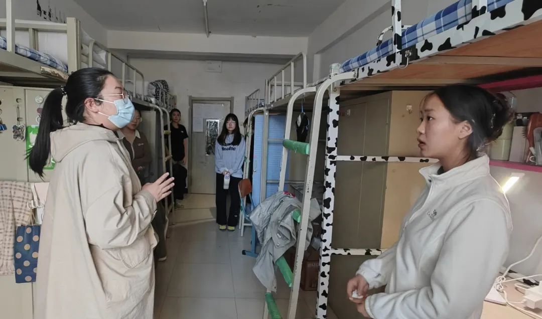 老师们亲切与同学们交流互动,了解大家的生活状态,嘱咐各位同学们在宿舍要相互帮助,共同营造一个舒适的居住环境。