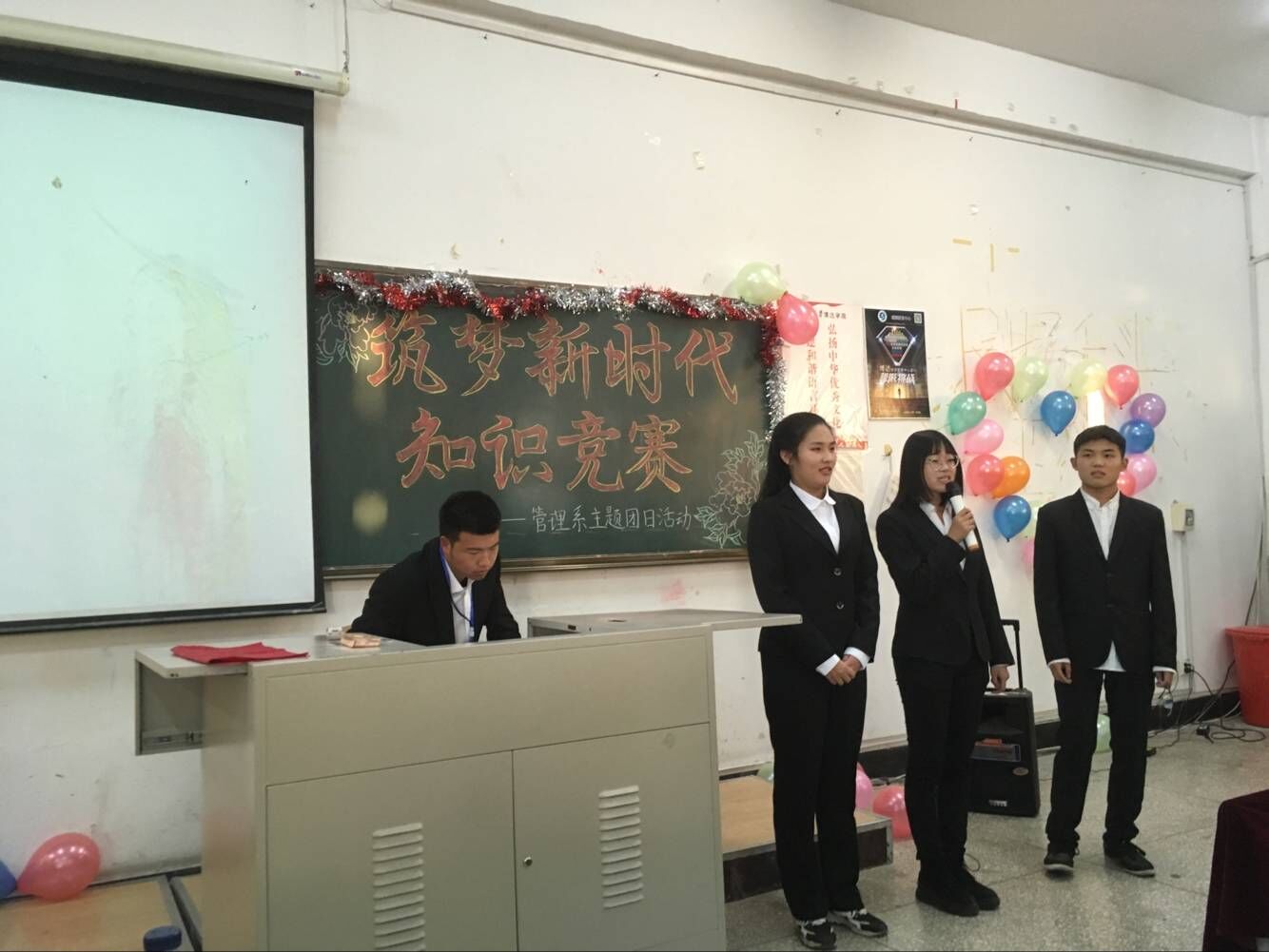 为深入学习宣传贯彻党的十九大精神,教育引导当代大学生关注党和国家的大事。2018年11月16日下午,由吉林师范大学博达学院管理系分团委组织召开主题党日活动“筑梦新时代知识竞赛”在3521教室如期开展。出席本次会议的嘉宾有辅导员梁婧老师、全承志老师,秘书处李慧老师、高曼曼老师、学生会各部长以及2018级学生。