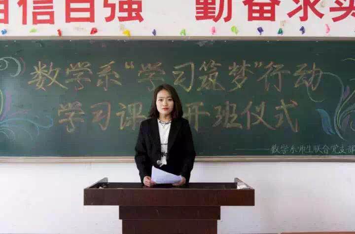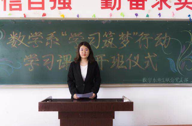 由数学系分团委副书记符睿琦同学宣读《吉林师范大学博达学院数学系大学生“学习筑梦”学习课堂学员名单》。