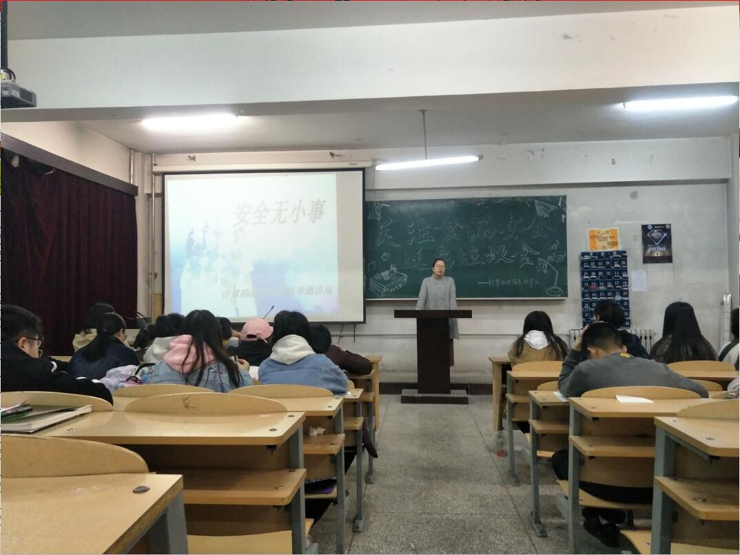 为确保校园安全,增强我系学生的自我保护和安全防范能力,营造和谐、健康、安定的校园环境,2018年3月29日晚我系举办了的“安全无小事”的主题讲座。此次讲座由辅导员赵一潼老师以食品安全,交通安全以及寝室安全等方面进行展开。