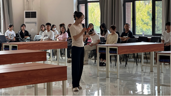 贾金媛老师带领老师和学生干部们首先通过“大风吹”、“贪吃蛇”、“梅花开”、“九宫格找朋友”等团队游戏,帮助老师和学生们走出自己的社交舒适圈,主动去寻找新伙伴。其次再通过“对暗号找朋友”这一环节让各学院师生们组成全新的队伍,开展各种精彩活动。