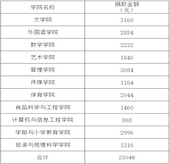 吉林师范大学博达学院第二十五届 “爱心一元钱”互助活动公示