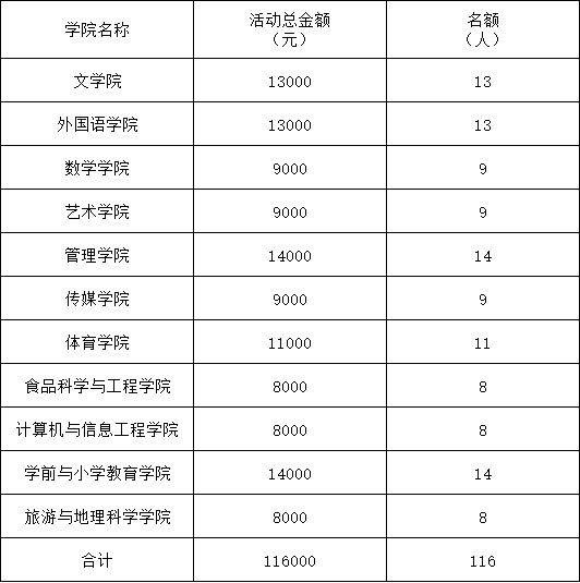 学校按照募集善款的总金额,按照每人发放1000元的标准确定学校名额。按照各学院学生募集善款和教师募集善款的比例下发至各学院。