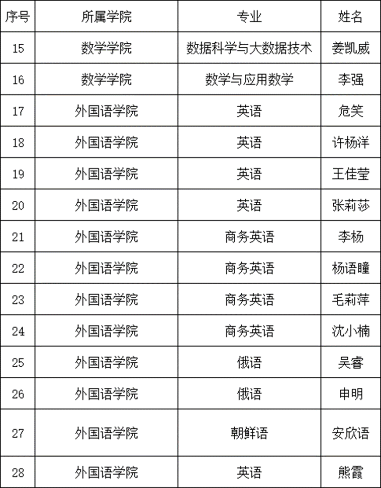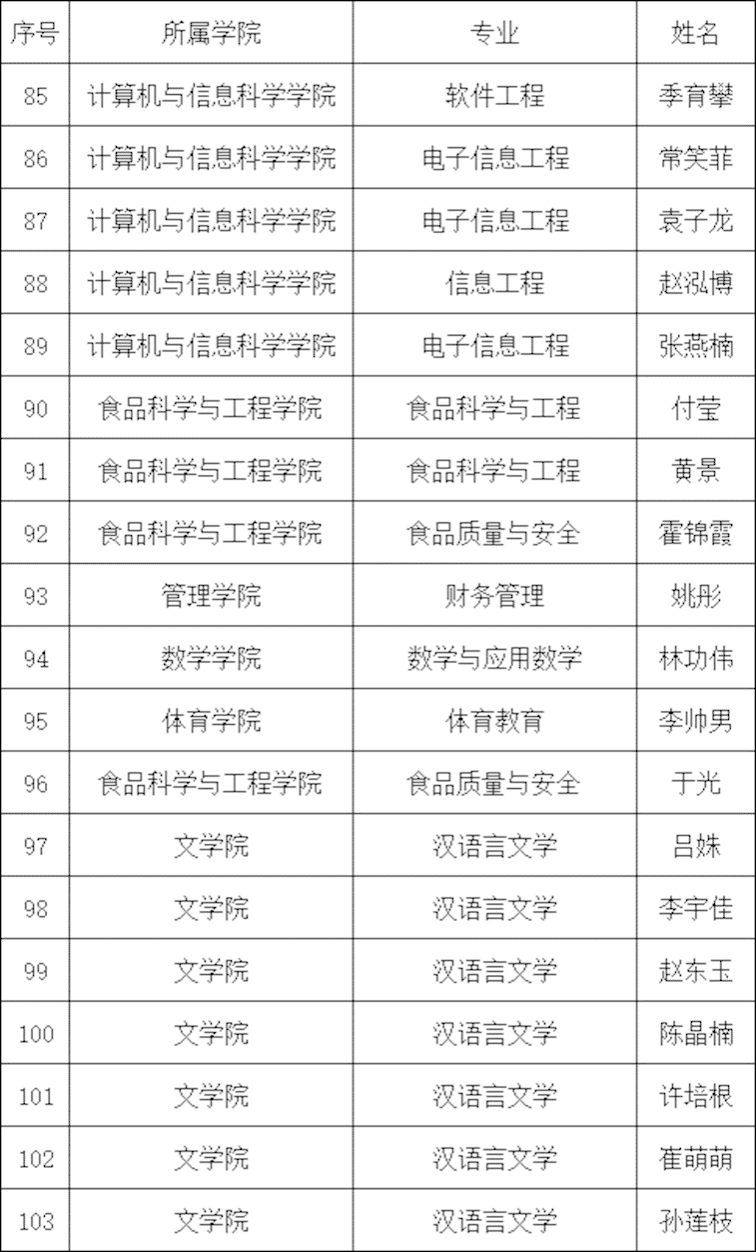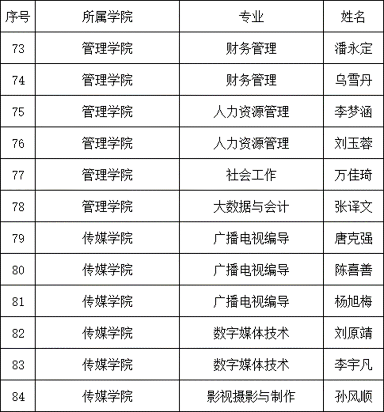 为了树立模范典型,发挥榜样力量,引导学生成人、成才、成功,营造创先争优的校园氛围,激励学生德、智、体、美、劳全面发展。学校坚持公平、公正、公开的原则,开展2025届优秀毕业生评审工作。经学生自愿申请、各学院优秀毕业生评审小组审核推荐,学校优秀毕业生评审领导小组集体研究审议,确定以下103名学生通过校级评审,现予以公示。
