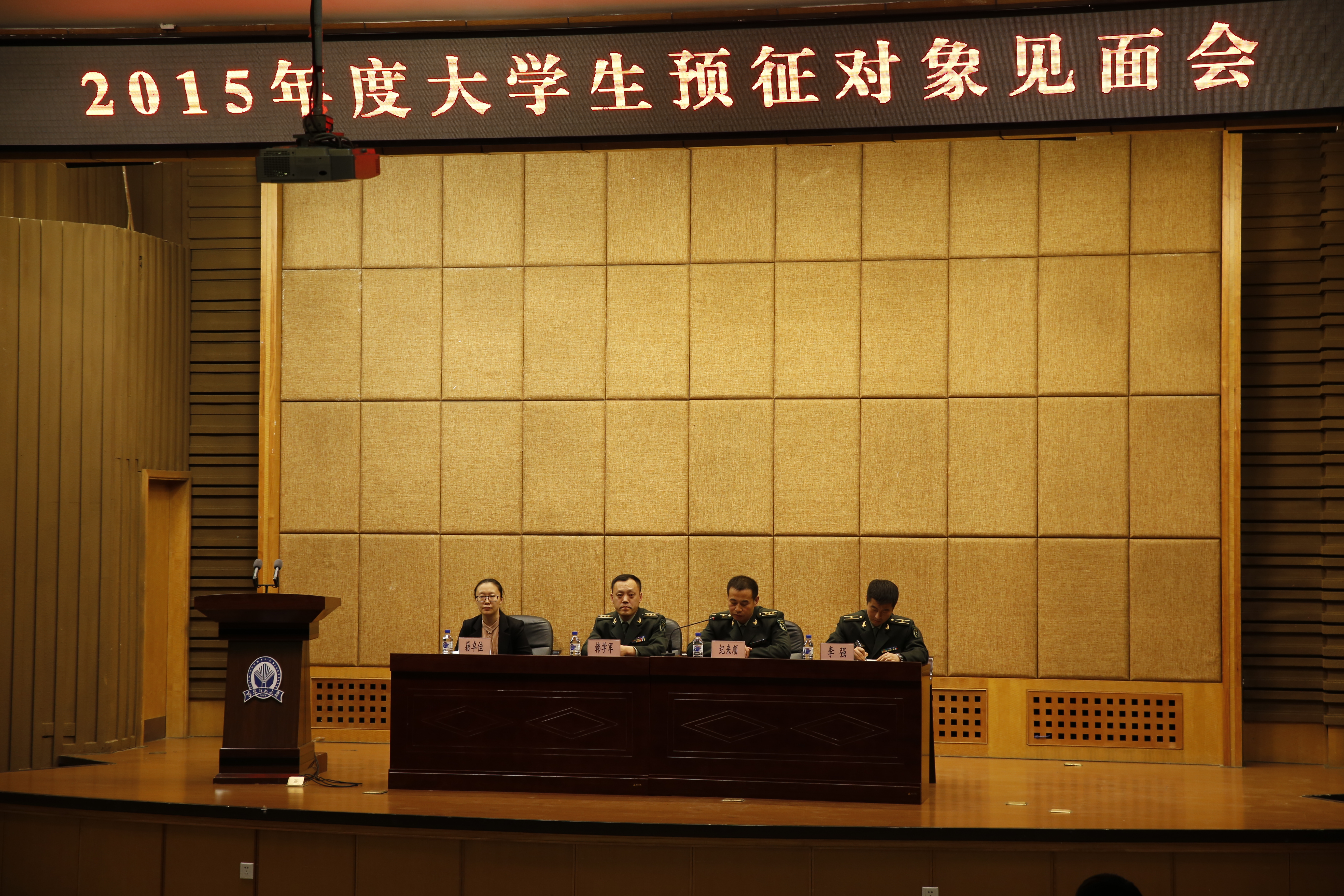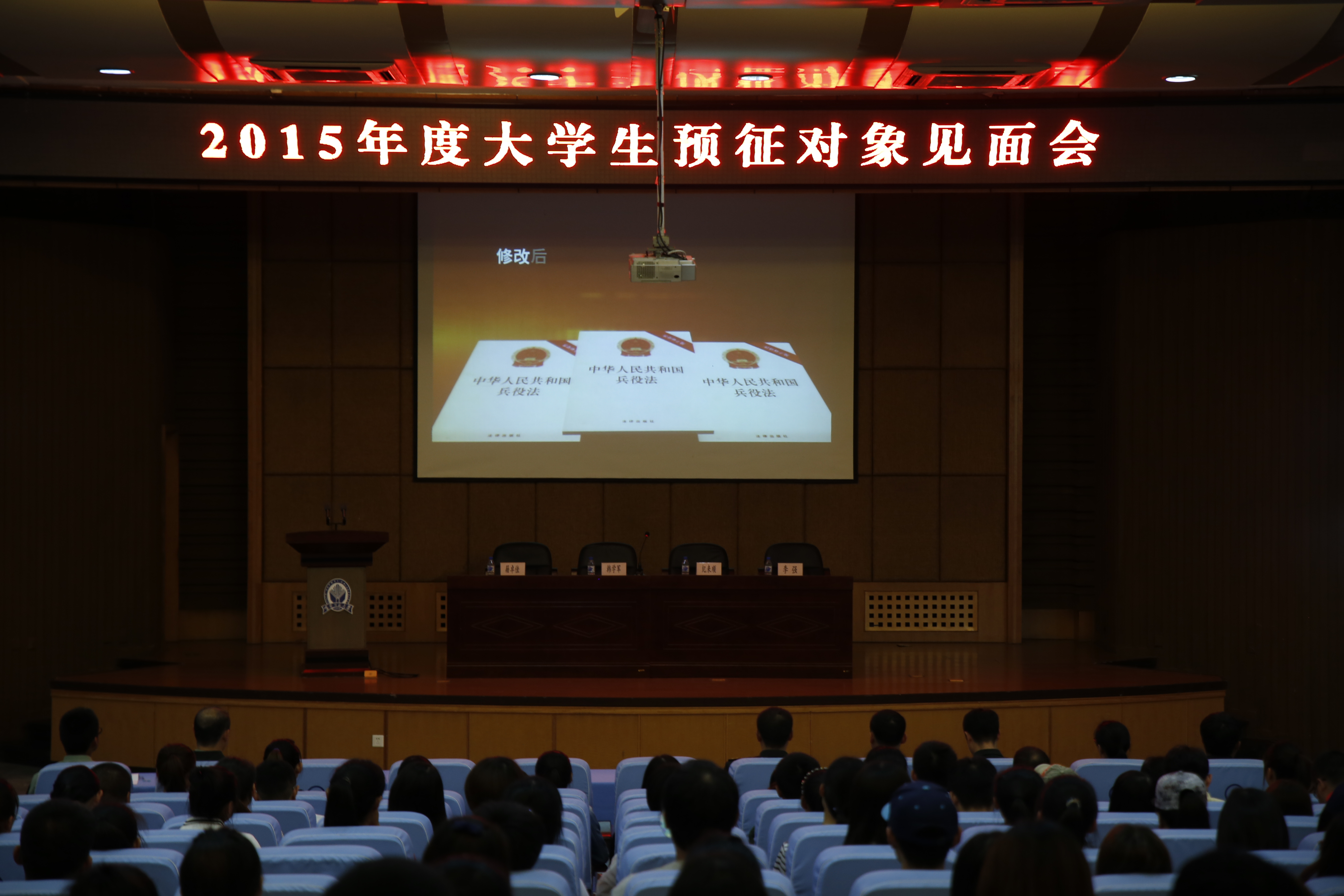 为了更好的开展一年一度的征兵工作,为了使广大学生更准确掌握今年征兵的相关政策规定,吉林师范大学博达学院2015年大学生预征对象见面会,于2015年5月22日下午2点30分在吉林师范大学图书馆一楼报告厅举行。莅临本场会议的嘉宾有:人武部部长纪来顺,人武部政委韩学军,军区动员参谋李强,入伍大学生优秀代表李辉等。
