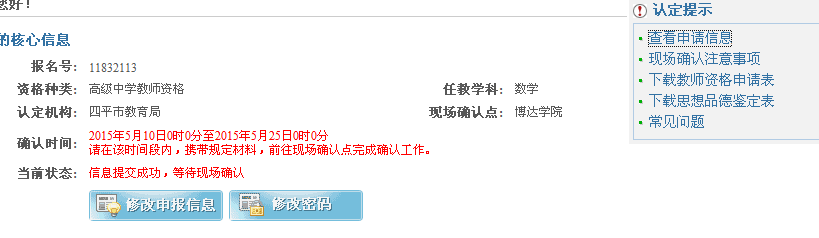 9.点击登录系统按钮,进入登录页面。登录后请查看当前状态是否是“信息提交成功,等待现场确认”,如图14。