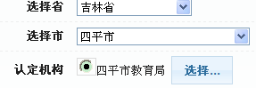 5.第四步选择认定机构,(1)选择省份项目选择吉林省;(2)选择市项目选择四平市;(3)认定机构项目分四平市铁西区教育局和四平市教育局。具体为申报幼儿园、小学教师资格和初级中学教师资格选择四平市铁西区教育局,申报高级中学教师资格选择四平市教育局。如图5。