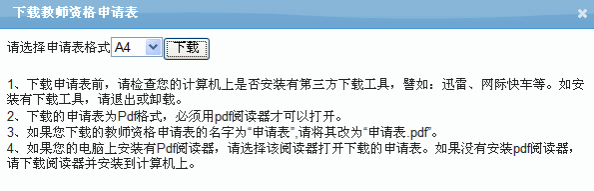 如正确请点击“下载教师资格申请表”,下载打印此表,如图15。用A4纸打印此表,打印完成后将此表按照下图复印成A3纸反正面(此表一式两份现场确认时交至学工办,第二页承诺书本人签字处必须填好,时间按第一页填表日期写),如图16、图17。