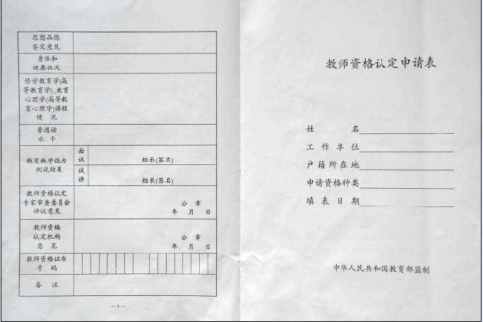 (1)思想品德鉴定表一式两份、教师资格证申请表一式两份(均在申请网站上打印,教师资格证申报表中需粘贴照片,要求与网报上传电子版同一底板)。