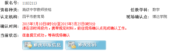 9.点击登录系统按钮,进入登录页面。登录后请查看当前状态是否是“信息提交成功,等待现场确认”,如图13。